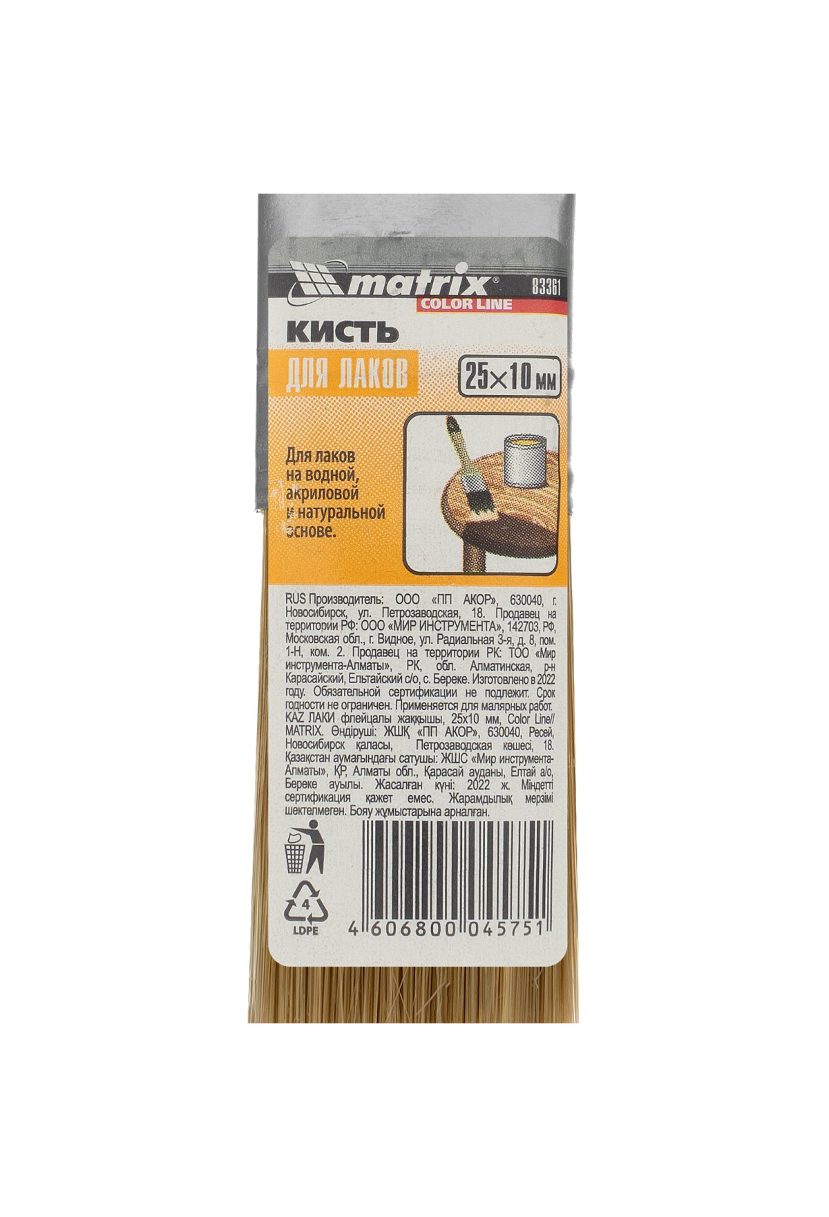 Технические характеристики Кисть флейцевая "Лаки" Color Line 25 х 10 мм Matrix