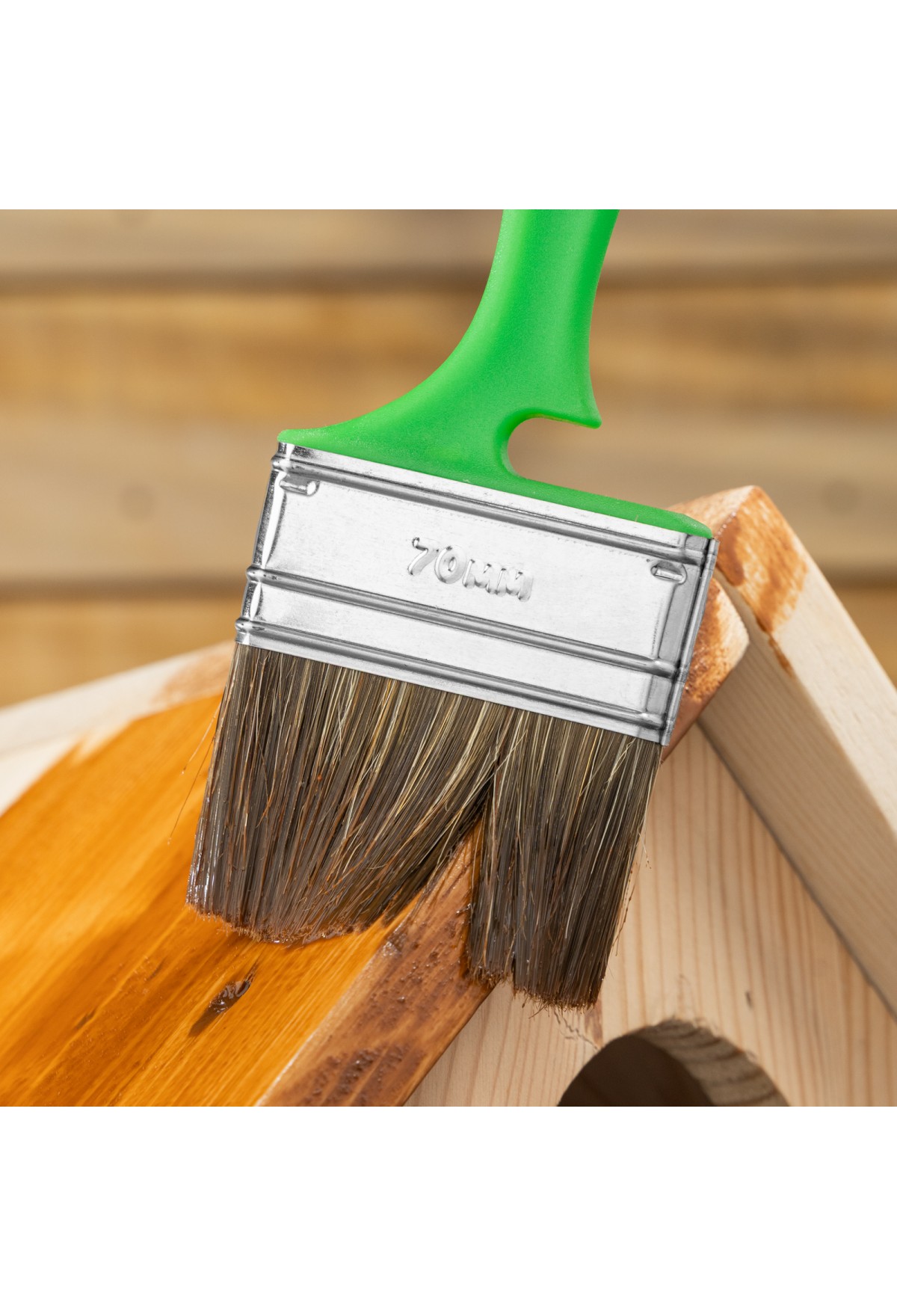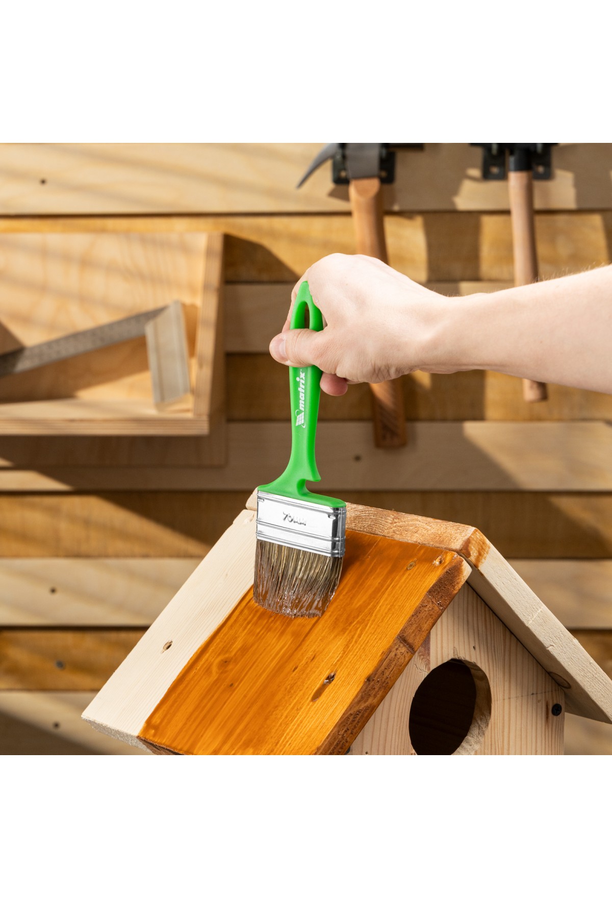 • Продуманная форма рукоятки — благодаря специальному вырезу кисть можно закрепить на банке, ведре или ванночке.