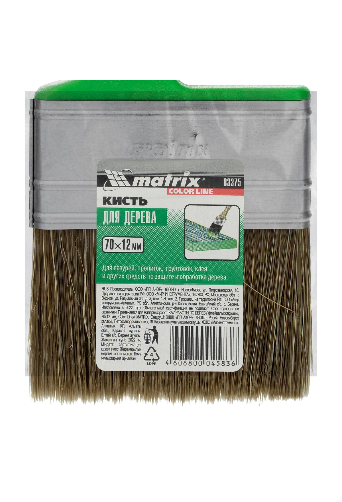 Технические характеристики Кисть флейцевая "Работы по дереву" Color Line 70 х 12 мм Matrix