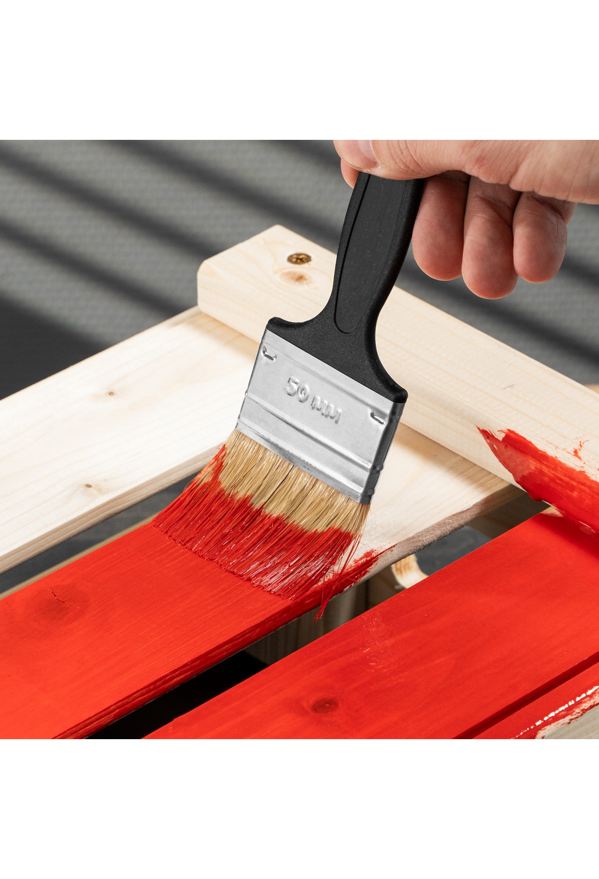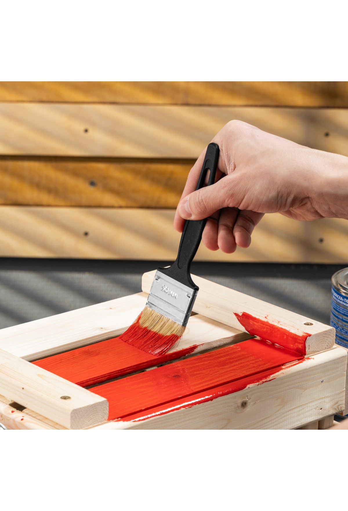 - Ширина 50 мм — кисть оптимальна для окрашивания небольших деталей, плинтусов и рам.