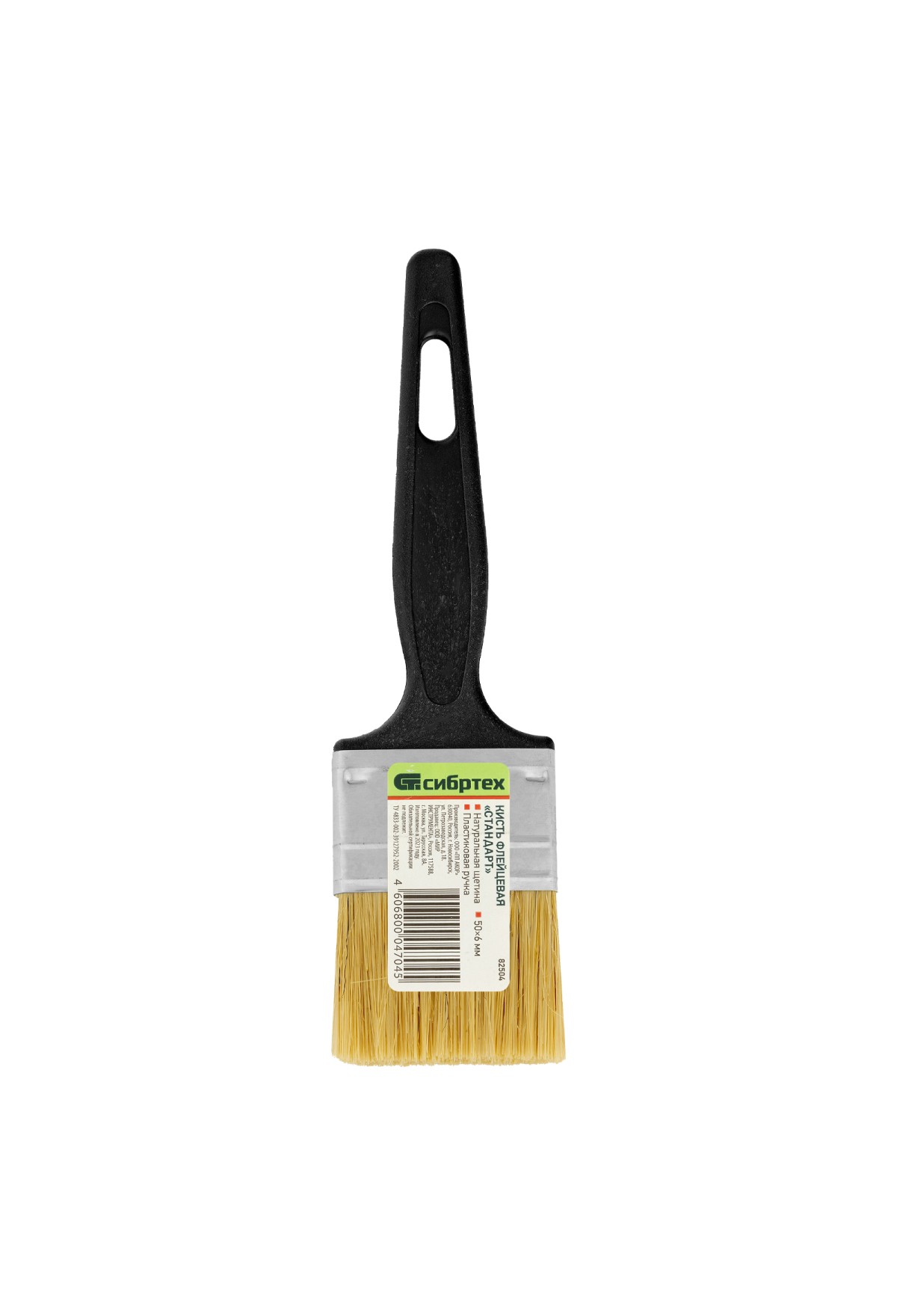 Технические характеристики Кисть флейцевая "Стандарт", 50 х 6 мм, натуральная щетина, пластиковая ручка Сибртех