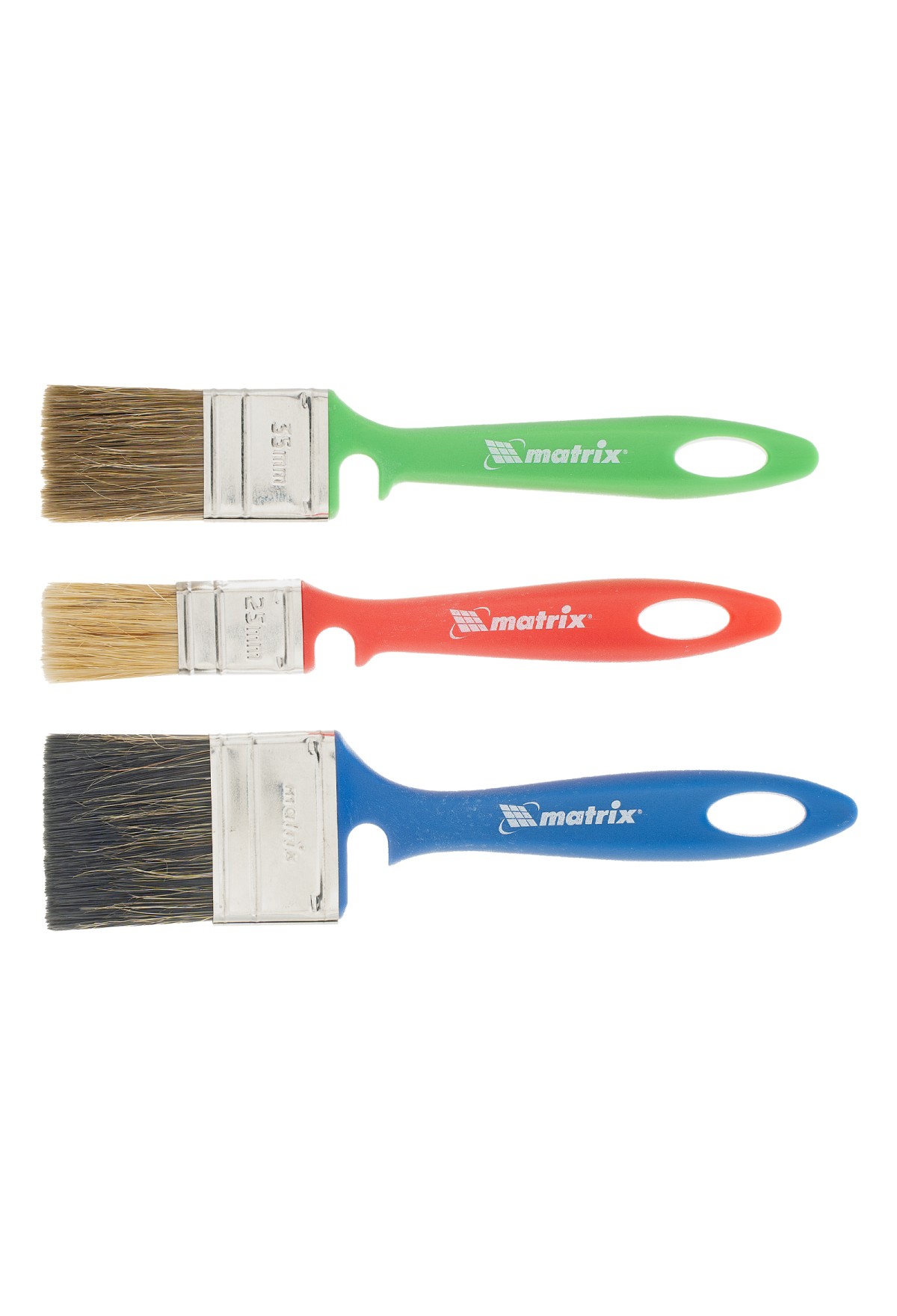 Набор Matrix Color Line «Универсальный» 83399 включает кисти шириной 25, 35 и 50 мм, подходит для выполнения отделочных работ любой сложности. Позволяет подобрать малярный инструмент в зависимости от состава, вязкости лакокрасочных материалов и типа окрашиваемой поверхности. В набор входит кисть для работы по дереву шириной 35 мм, для водных красок — 50 мм и для эмалей — 25 мм. Упругая плотная щетина с расщепленными кончиками характеризуется высокими краскообменными свойствами и обеспечивает качественное нанесение ЛКМ для каждой кисти.