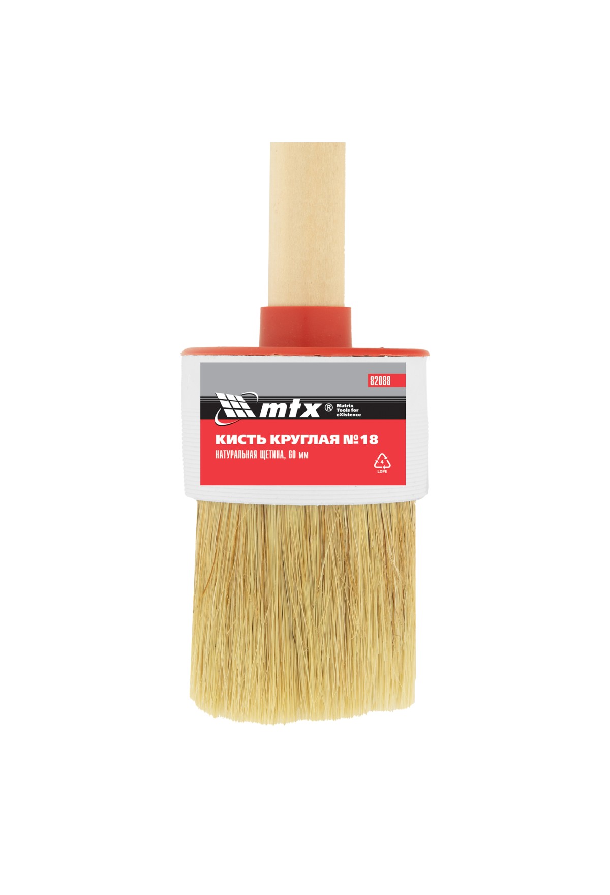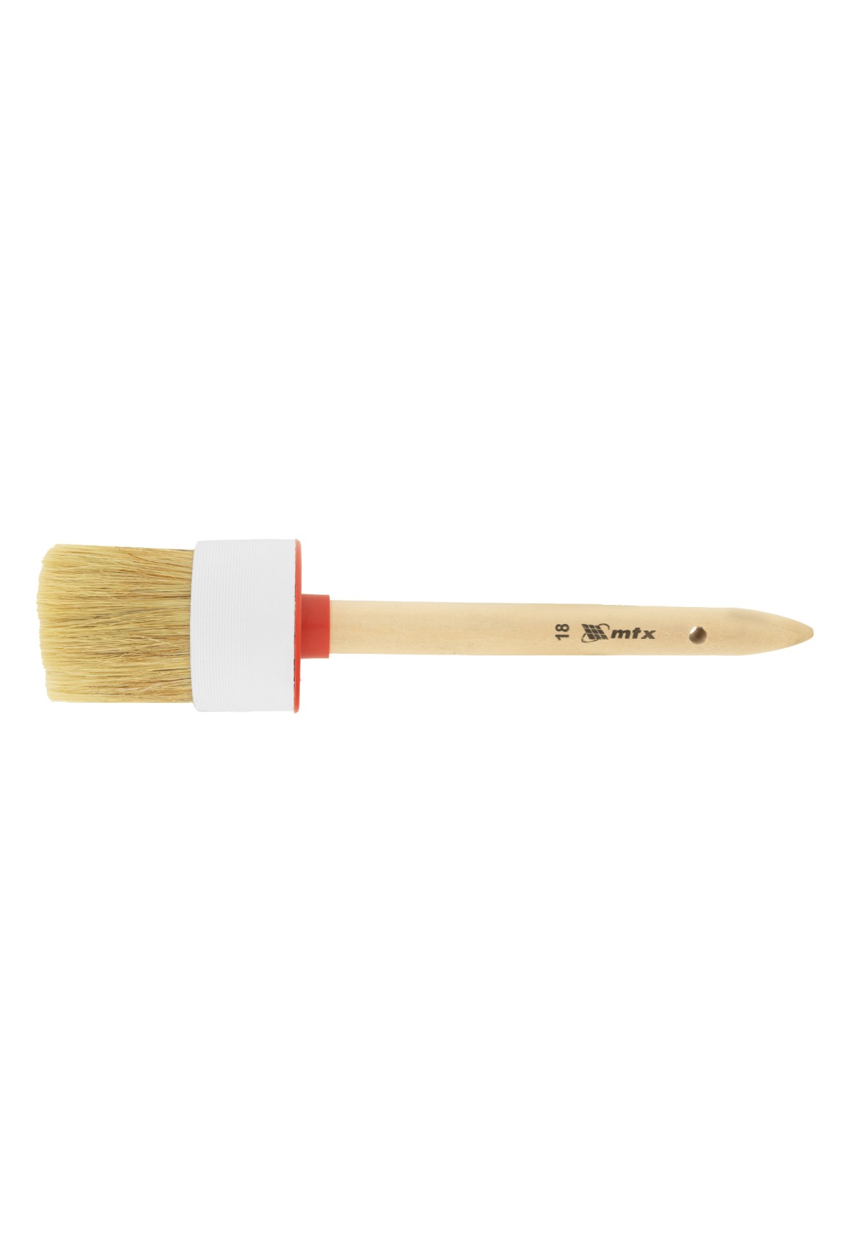 Технические характеристики Кисть круглая №18 (60 мм), натуральная щетина, деревянная ручка MTX