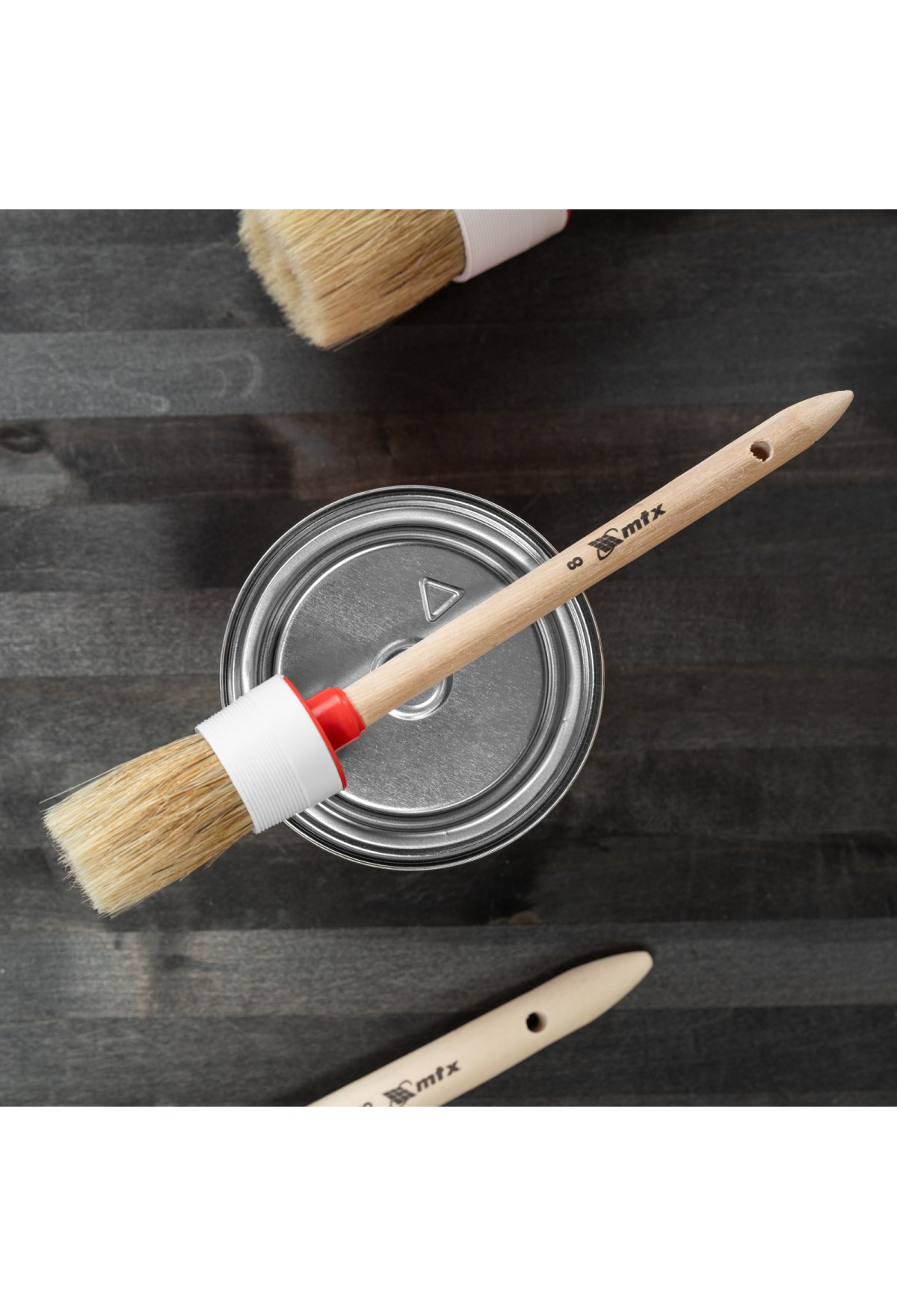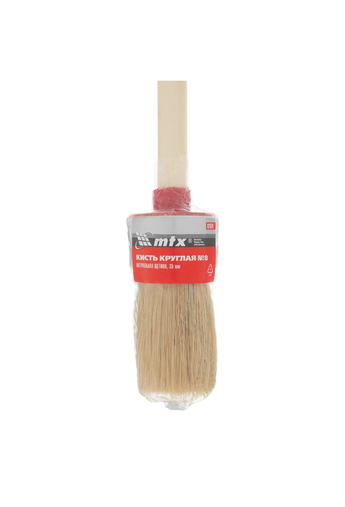 Технические характеристики Кисть круглая № 8 (35 мм), натуральная щетина, деревянная ручка MTX