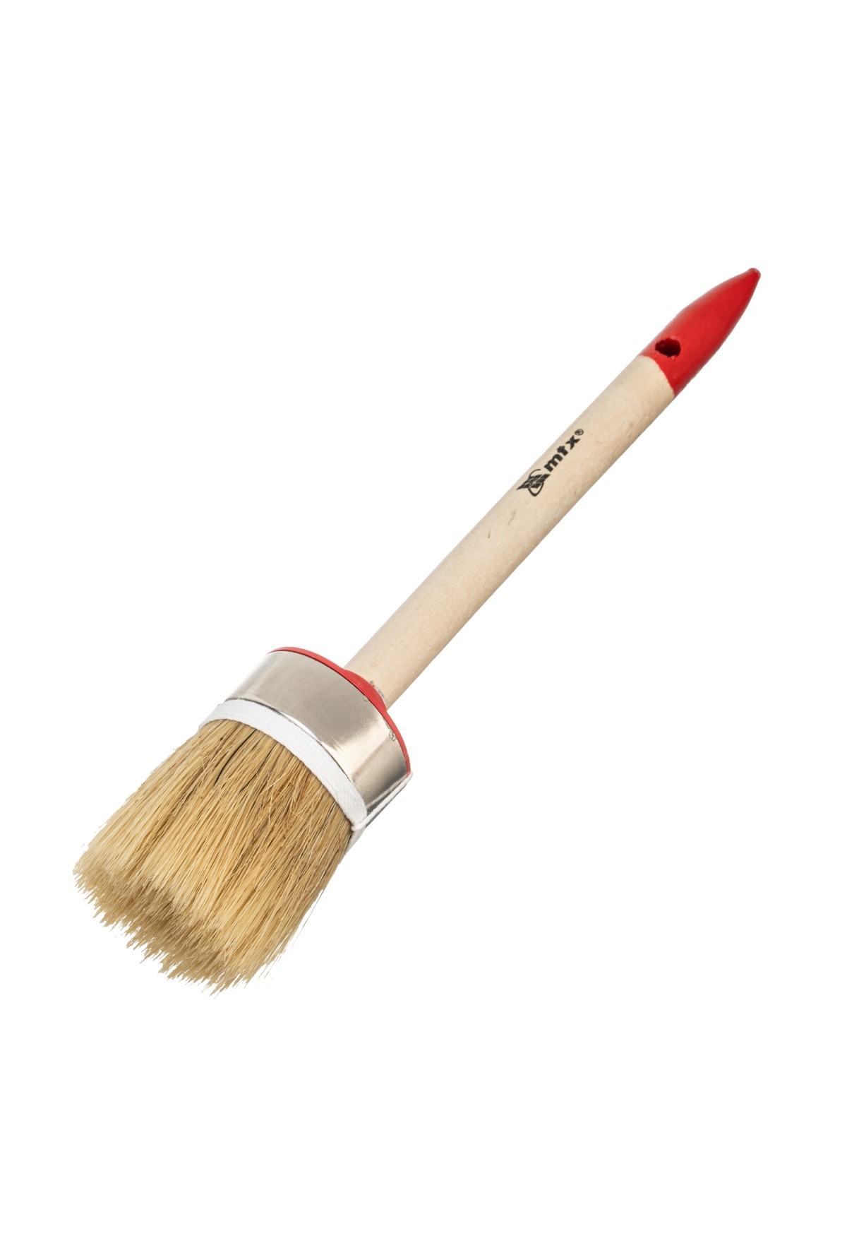 Круглая кисть MTX Профи №12 82048 диаметром 45 мм, с натуральной щетиной и деревянной ручкой, используется при проведении профессиональных малярных работ. Рабочая часть из натуральной свиной щетины с небольшим добавлением искусственной устойчива к агрессивным масляным краскам и ЛКМ на основе растворителей. Круглая кисть оптимально подходит для окрашивания узких и труднодоступных участков.