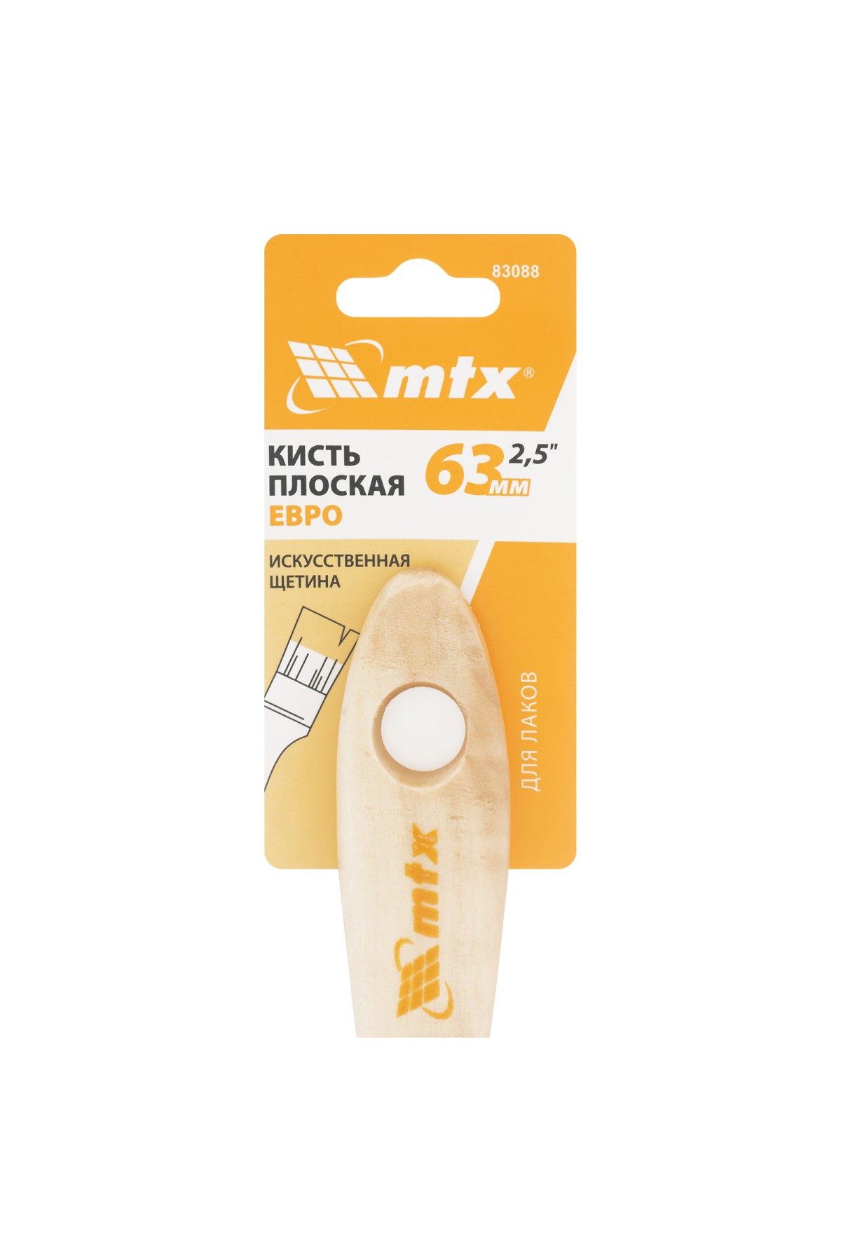 Кисть плоская для лаков "Евро" 2.5", искусственная щетина, деревянная ручка MTX