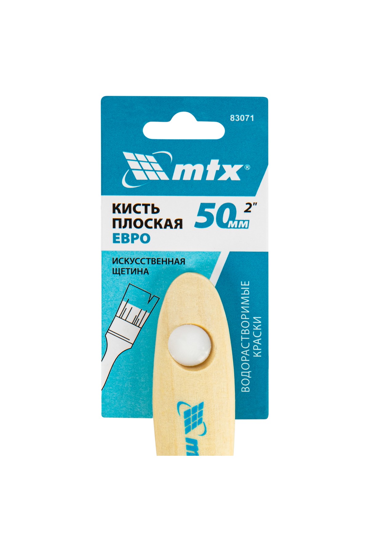 Плоская кисть MTX «Евро» 83071 шириной 2", с искусственной щетиной и деревянной ручкой, предназначена для малярных работ. Оптимальна для работы с водорастворимыми ЛКМ (акриловыми, латексными, водоэмульсионными), удобна для обработки узких и труднодоступных мест. Кисть подходит для профессионального использования.