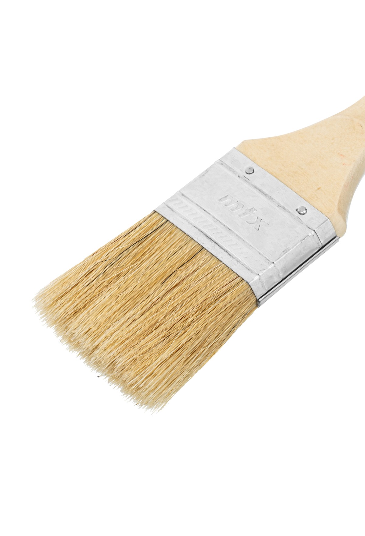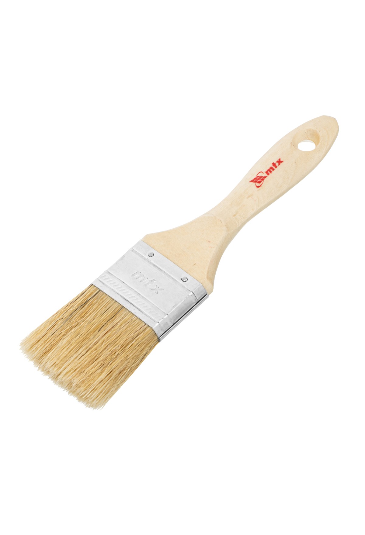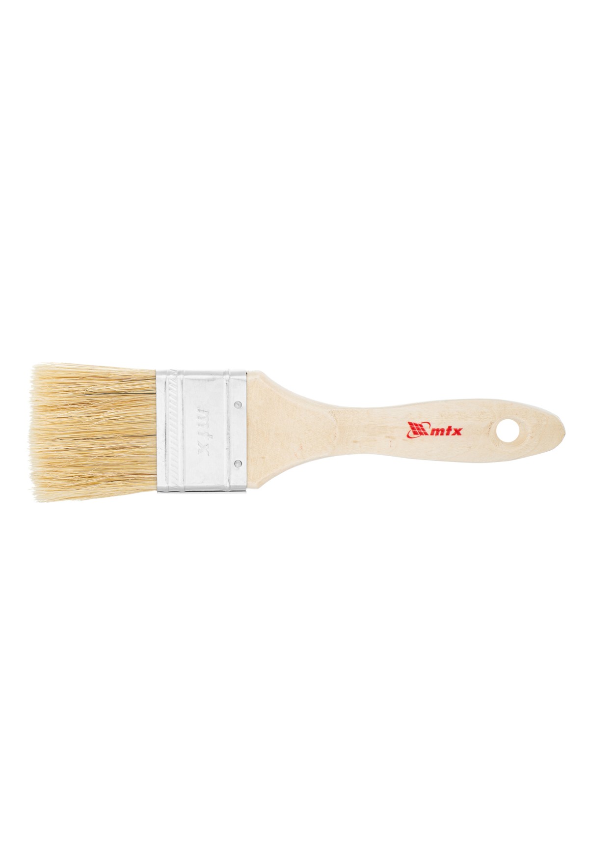 Плоская кисть MTX «Евро» 83053 шириной 2 дюйма, с натуральной щетиной и деревянной ручкой, используется для профессионального окрашивания поверхностей. Рекомендуется для нанесения агрессивных ЛКМ с содержанием растворителей.