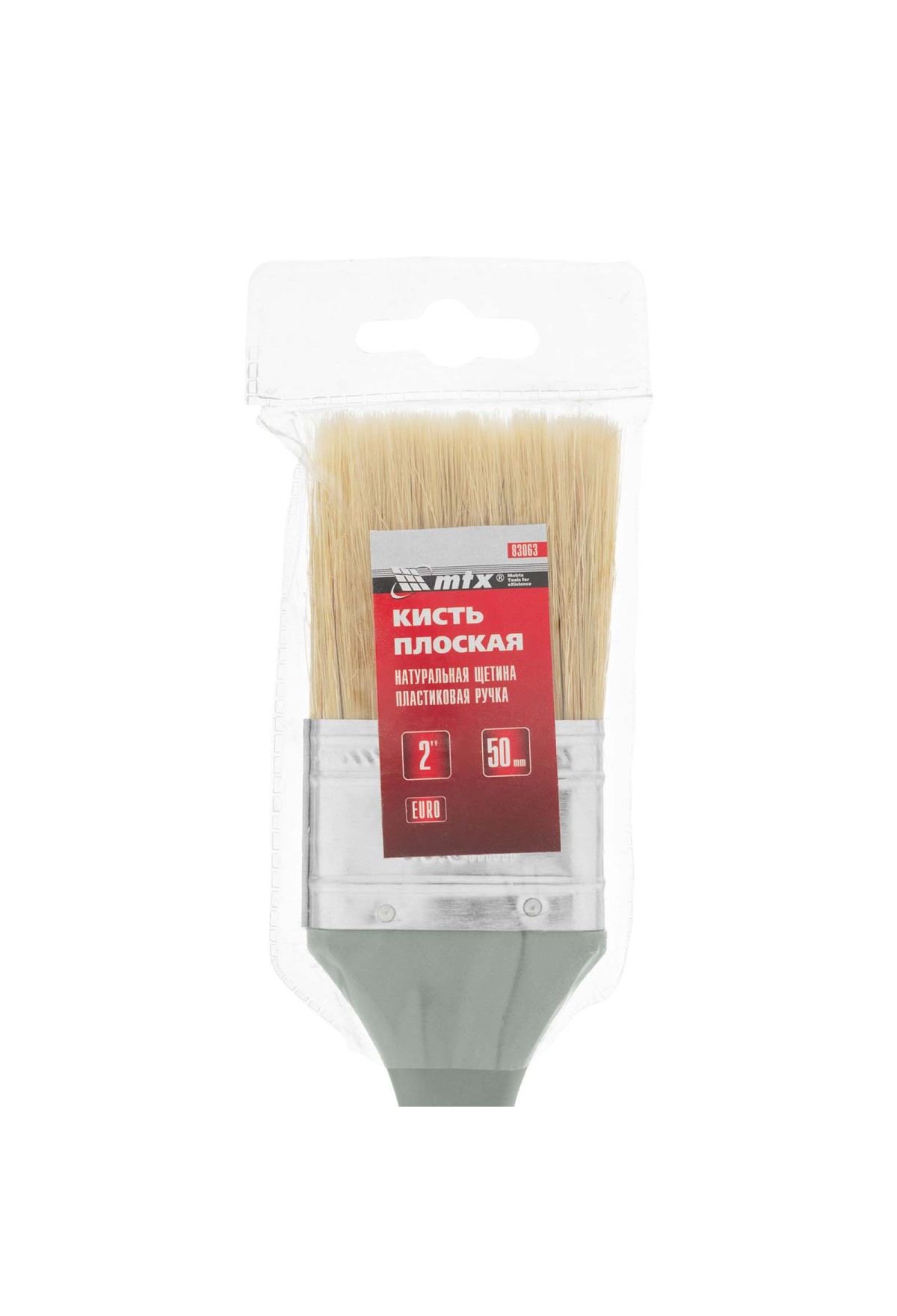 Технические характеристики Кисть плоская "Евро" 2", натуральная щетина, пластмассовая ручка MTX