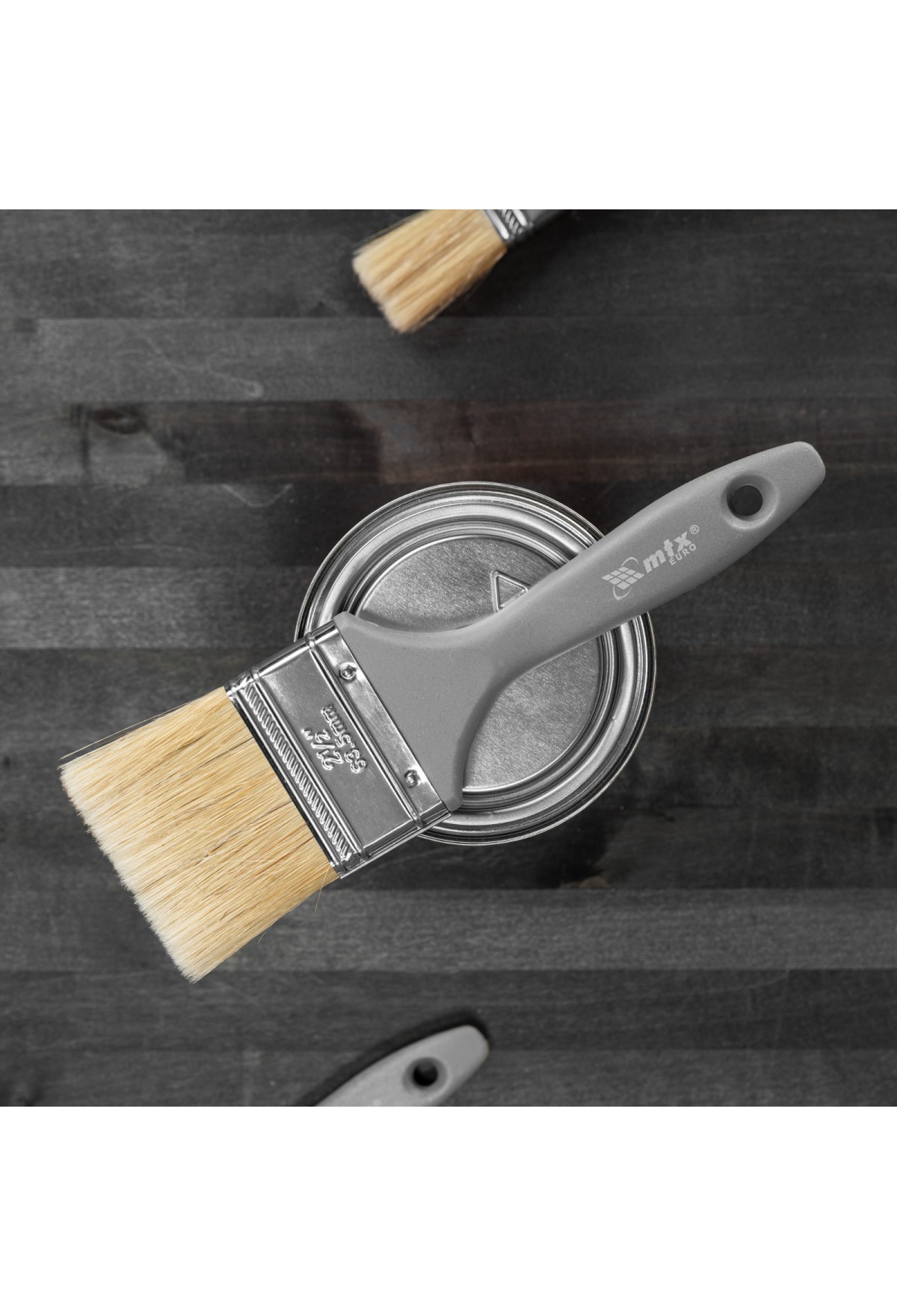 Плоская кисть MTX «Евро» 83064 шириной 2,5 дюйма, с натуральной щетиной и пластмассовой ручкой, используется для профессионального окрашивания поверхностей. Рекомендуется для нанесения агрессивных ЛКМ с содержанием растворителей.