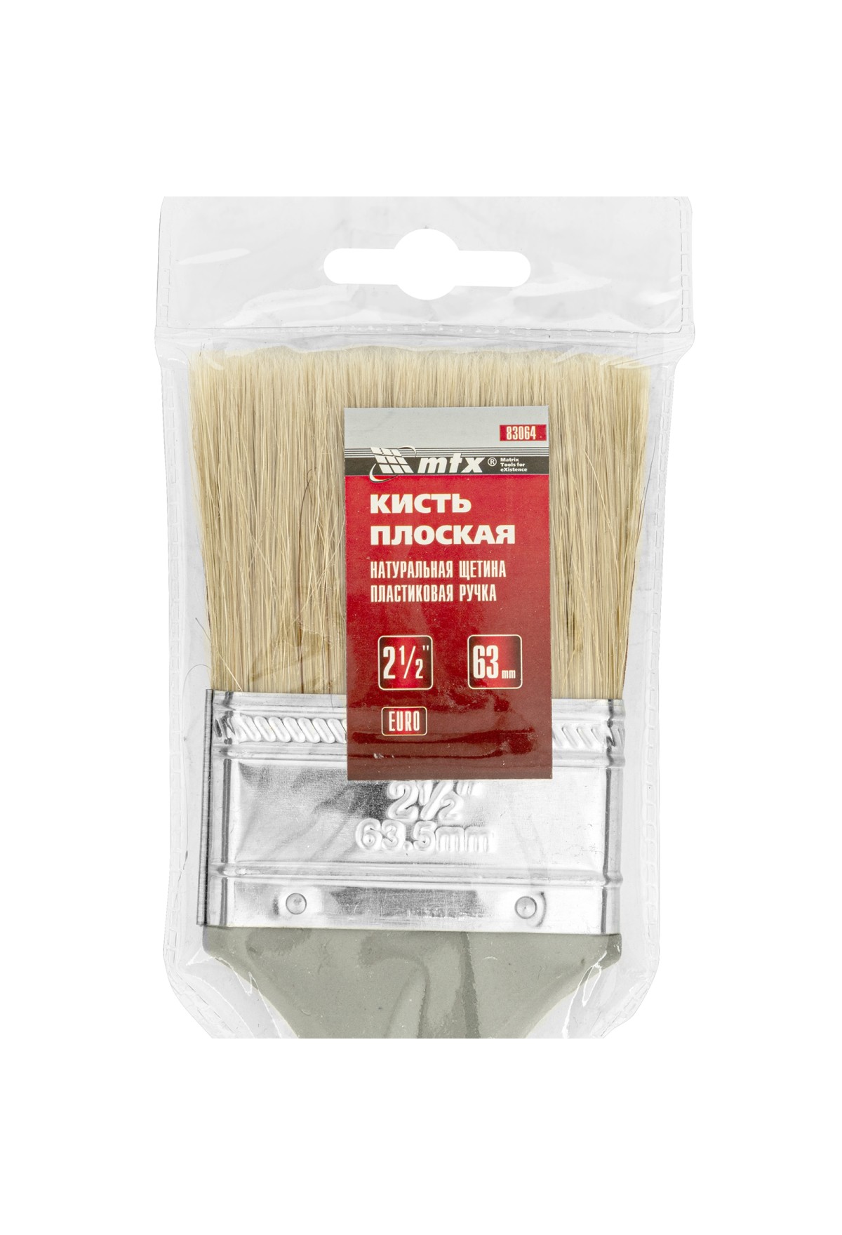 Технические характеристики Кисть плоская "Евро" 2.5", натуральная щетина, пластмассовая ручка MTX