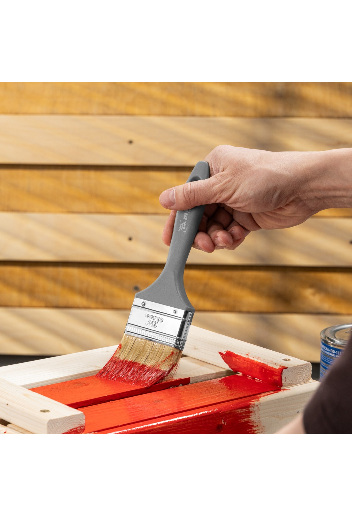 - Ширина рабочей части 63 мм — кистью удобно окрашивать небольшие участки.