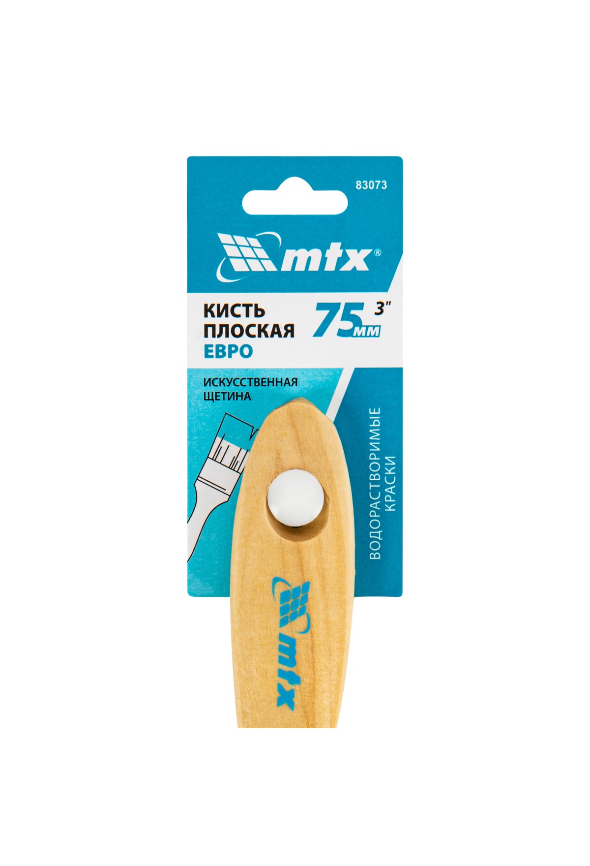 Плоская кисть MTX «Евро» 83073 шириной 3", с искусственной щетиной и деревянной ручкой, предназначена для малярных работ. Оптимальна для работы с водорастворимыми ЛКМ (акриловыми, латексными, водоэмульсионными), удобна для обработки участков небольшой площади. Кисть подходит для профессионального использования.