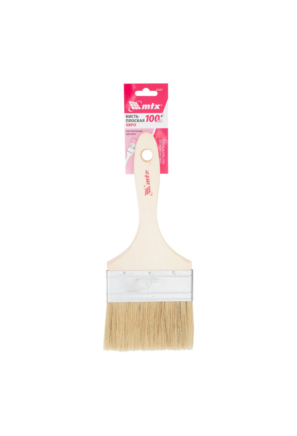 Технические характеристики Кисть плоская "Евро" 4", натуральная щетина, деревянная ручка MTX