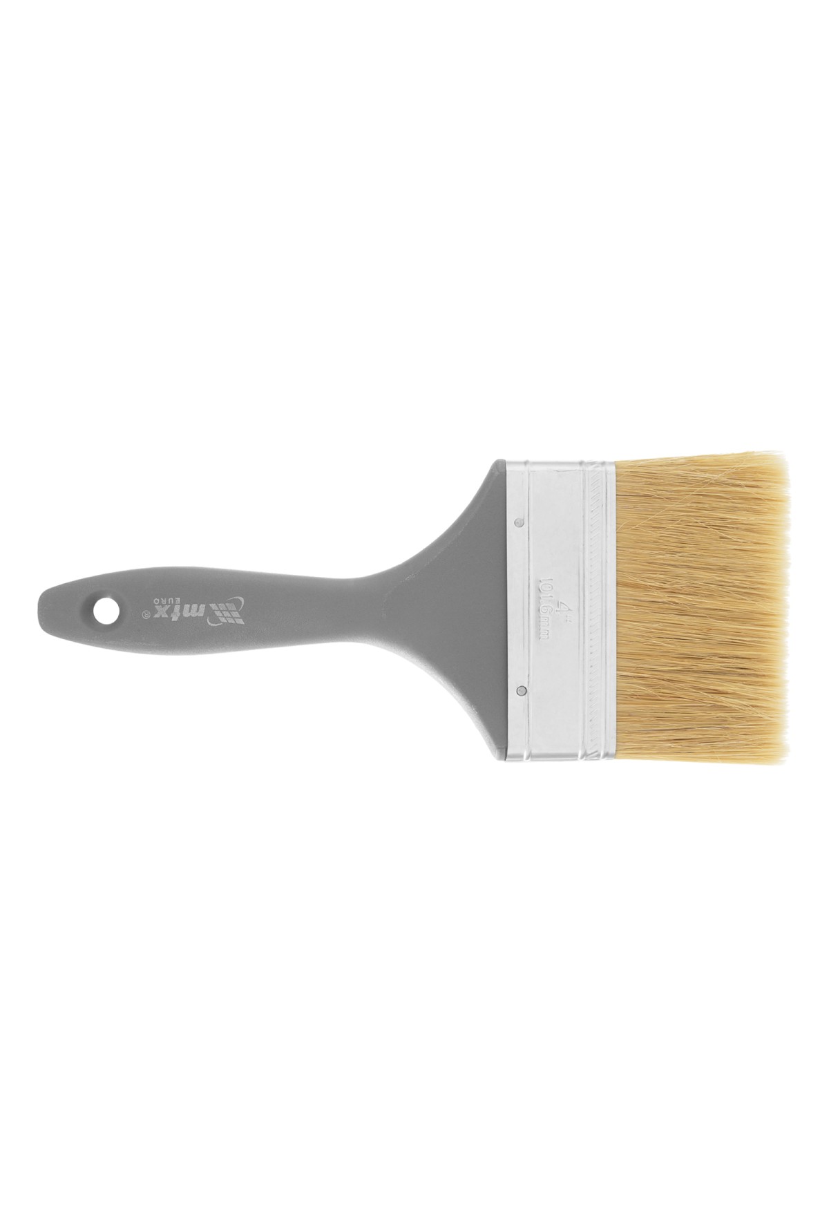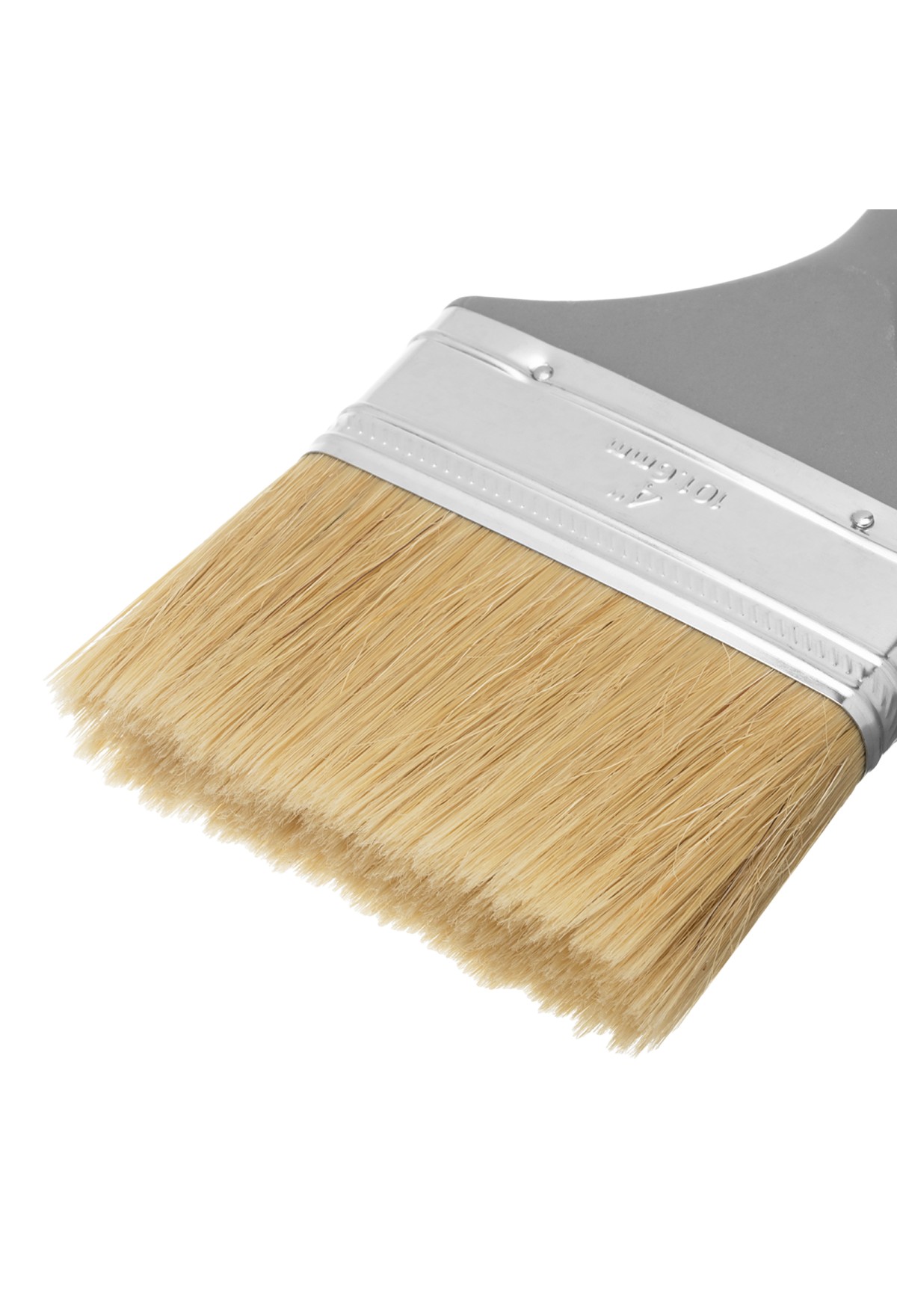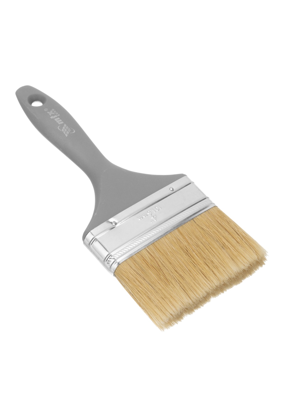 Плоская кисть MTX «Евро» 83067 шириной 4 дюйма, с натуральной щетиной и пластмассовой ручкой, используется для профессионального окрашивания поверхностей. Рекомендуется для нанесения агрессивных ЛКМ с содержанием растворителей.