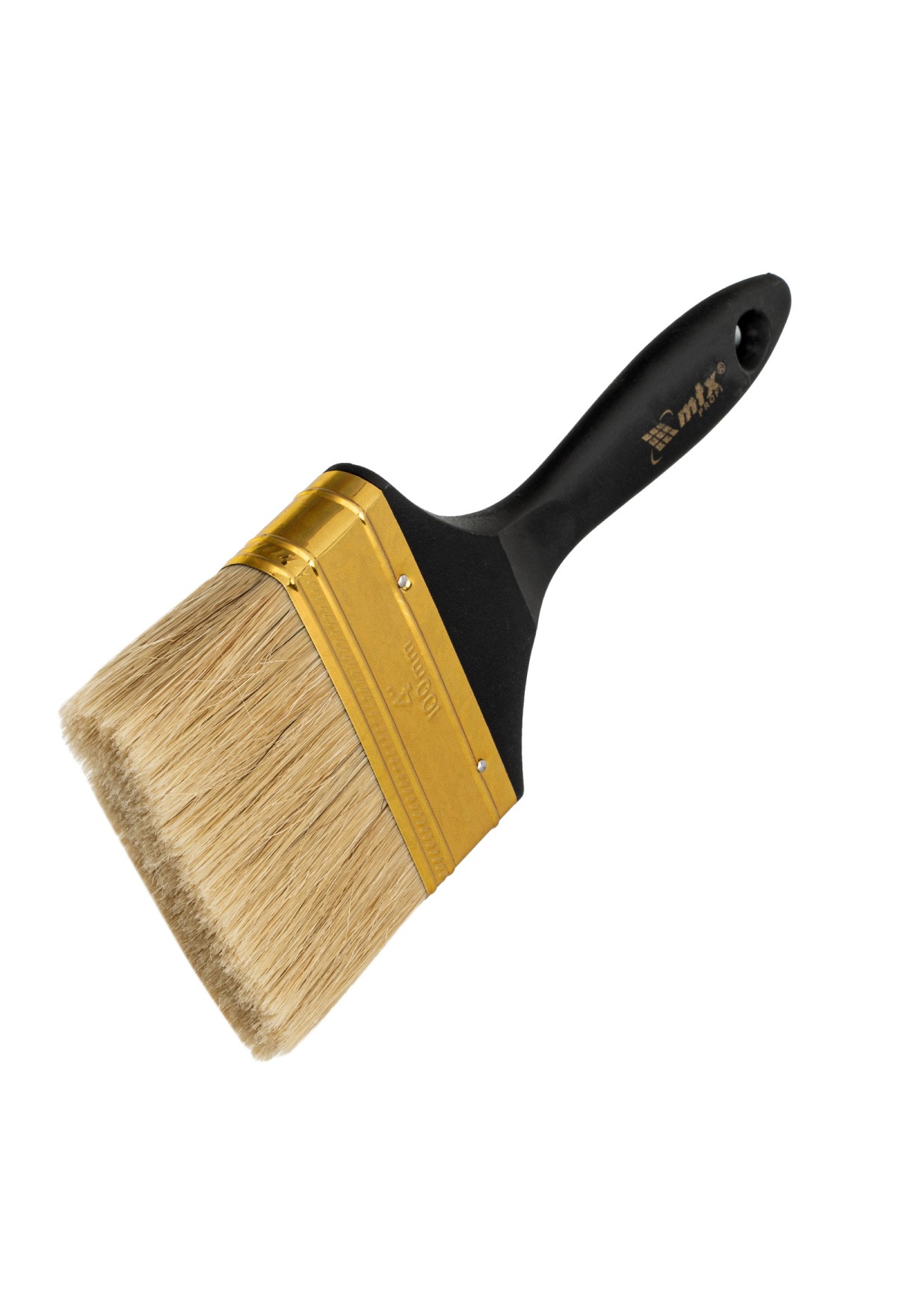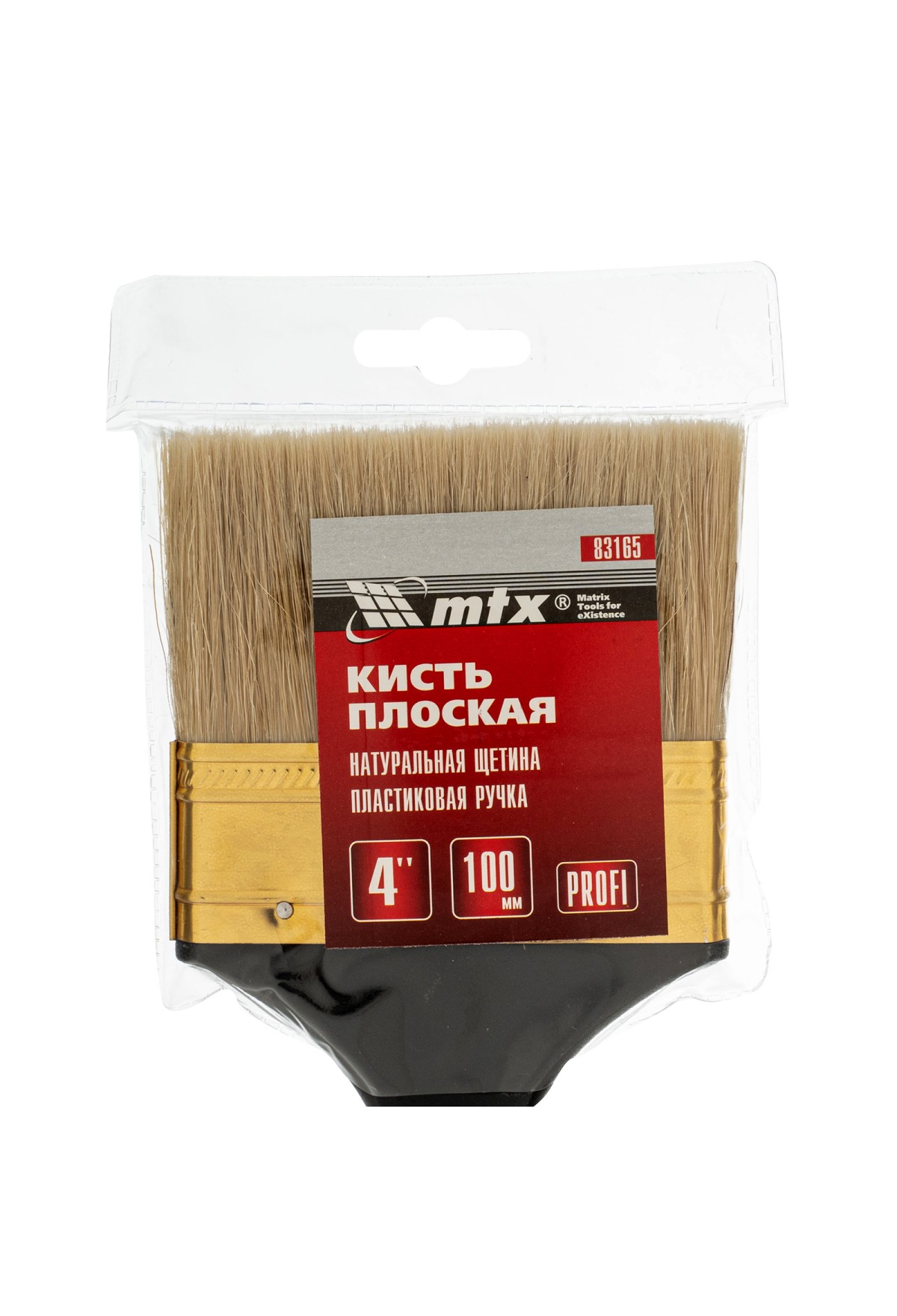 Плоская кисть «Профи» MTX 83165 шириной 4 дюйма, с натуральной щетиной и пластмассовой ручкой, рассчитана на профессиональное выполнение малярных работ. Натуральная щетина с увеличенной плотностью набивки подходит для нанесения различных типов ЛКМ, в том числе содержащих растворители.