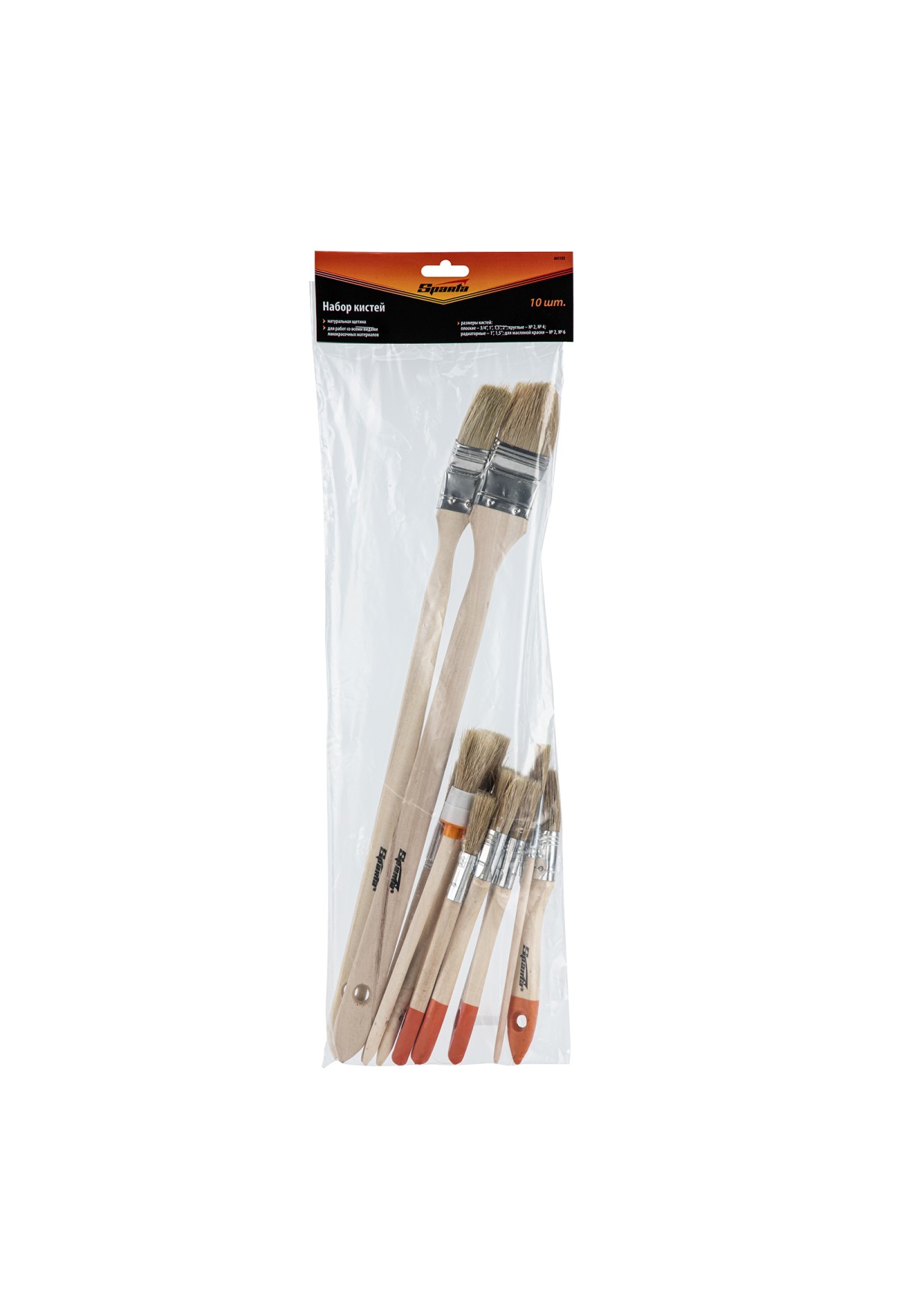 Технические характеристики Набор кистей, 10 шт, плоские 3/4"-2" круглые №2, 4 радиаторные 1", 1.5" для масляной краски №2, 6 Sparta