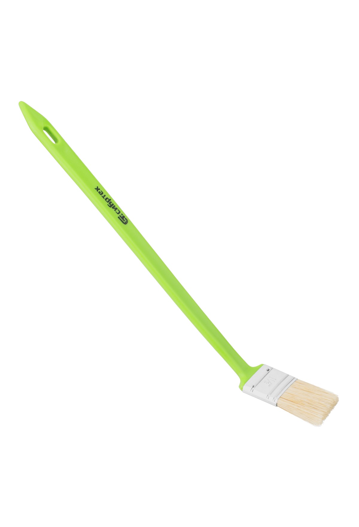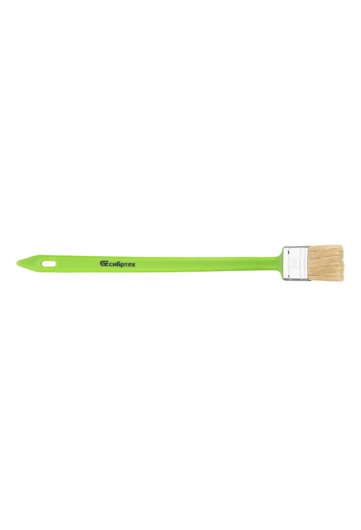 Радиаторная кисть Сибртех 83856 шириной 36 мм, с натуральной щетиной и пластиковой ручкой, позволяет окрашивать радиаторы, трубы, проволочные конструкции. Особенно удобна для покраски углов и стыков пола или потолка со стенами. Удлиненная ручка облегчает проведение малярных работ. Натуральная щетина с добавлением искусственного ворса устойчива к деформации и сохраняет упругость и краскообменные качества при использовании масляных красок и эмалей.