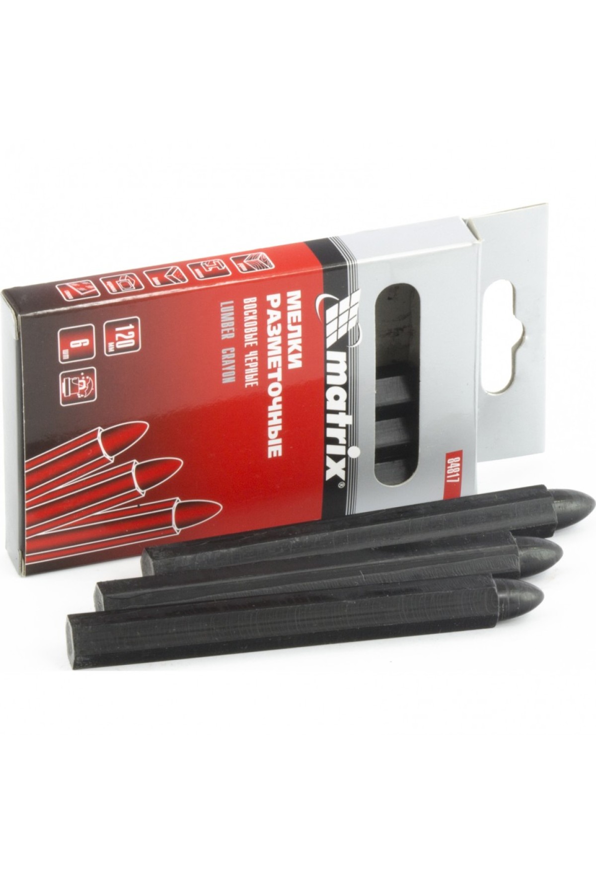 Черные разметочные восковые мелки Matrix 84817 длиной 120 мм, 6 шт. в коробке, предназначены для нанесения линий и различных обозначений. Универсальные мелки можно использовать на гладких и шероховатых поверхностях: бетоне, металле, пластике, керамике, стекле.