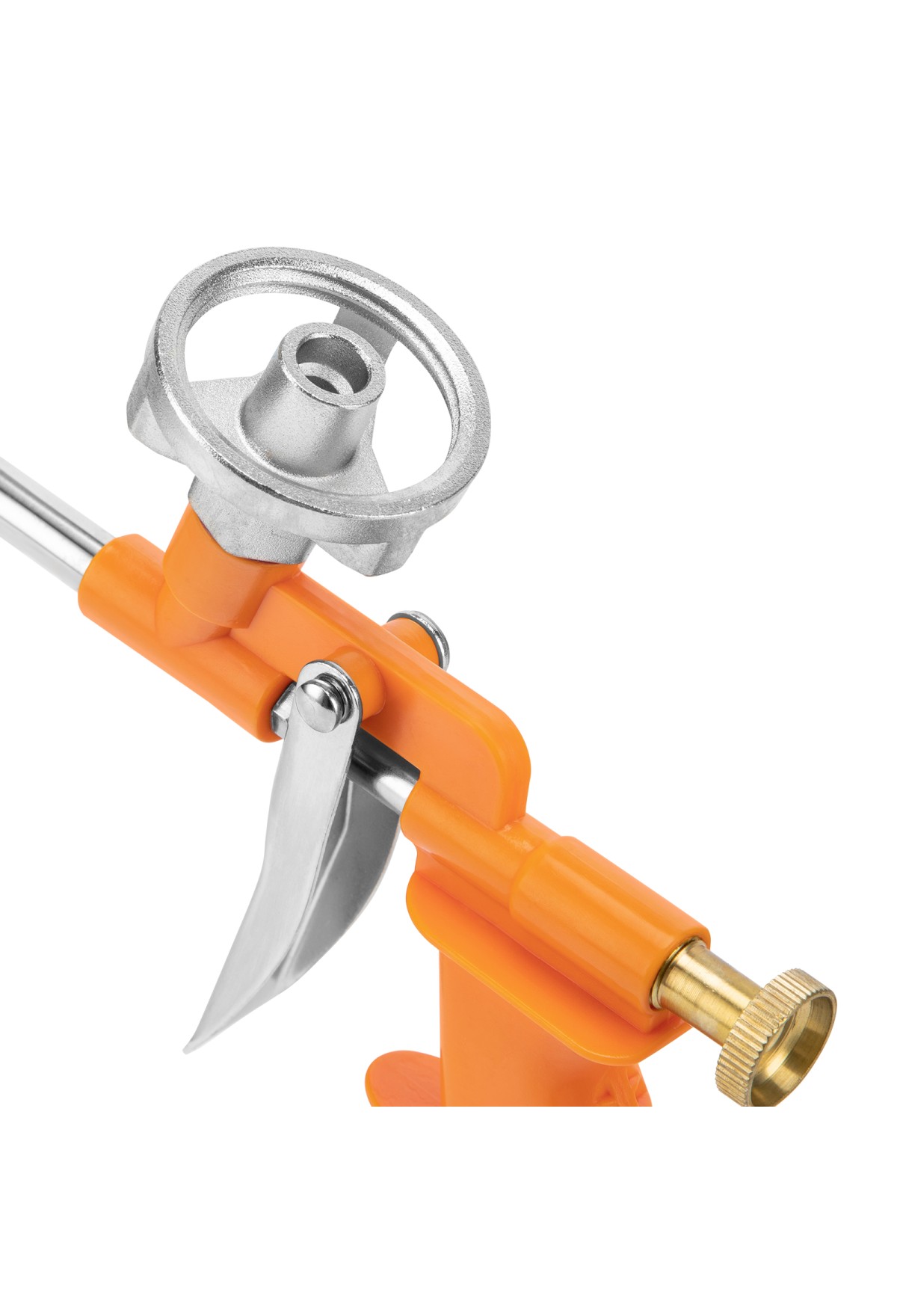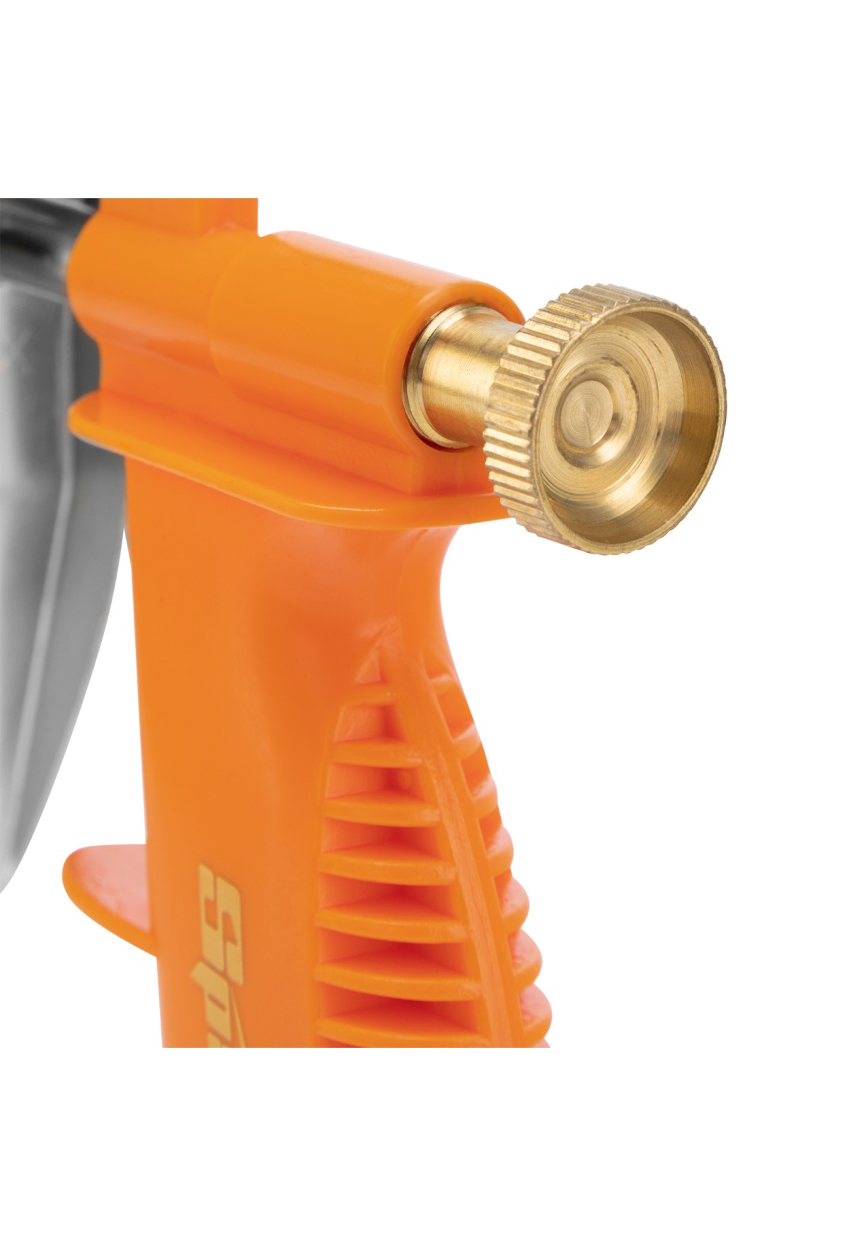 Пистолет для монтажной пены Sparta 88673 с облегченным корпусом используется для уплотнения и герметизации различных конструкций, заполнения трещин и пустот. Корпус изготовлен из ударопрочного пластика, а ствол из стали, что снижает риск поломки пистолета в случае случайного удара или падения. Металлический адаптер повышает надежность инструмента. Пистолет будет полезен строителям, мастерам по ремонту, а также пригодится в быту — специальных знаний для его эксплуатации не требуется.