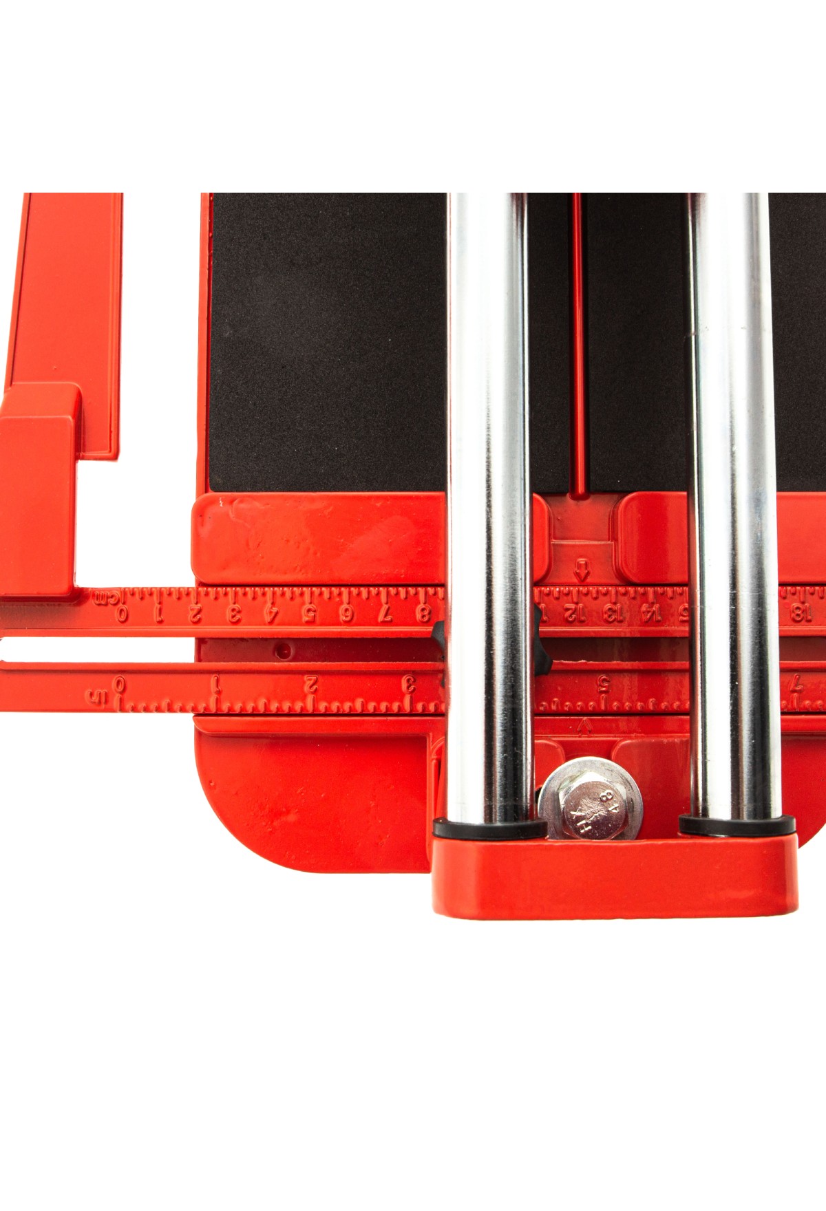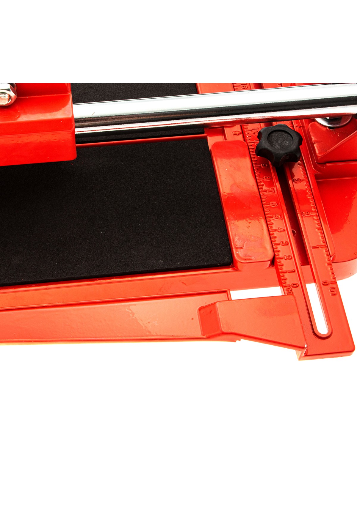 • Устойчивое основание и неподвижность плитки — плиткорез снабжен цельнолитой станиной из алюминиево-магниевого сплава с обрезиненной поверхностью, а также мягкими амортизирующими накладками.