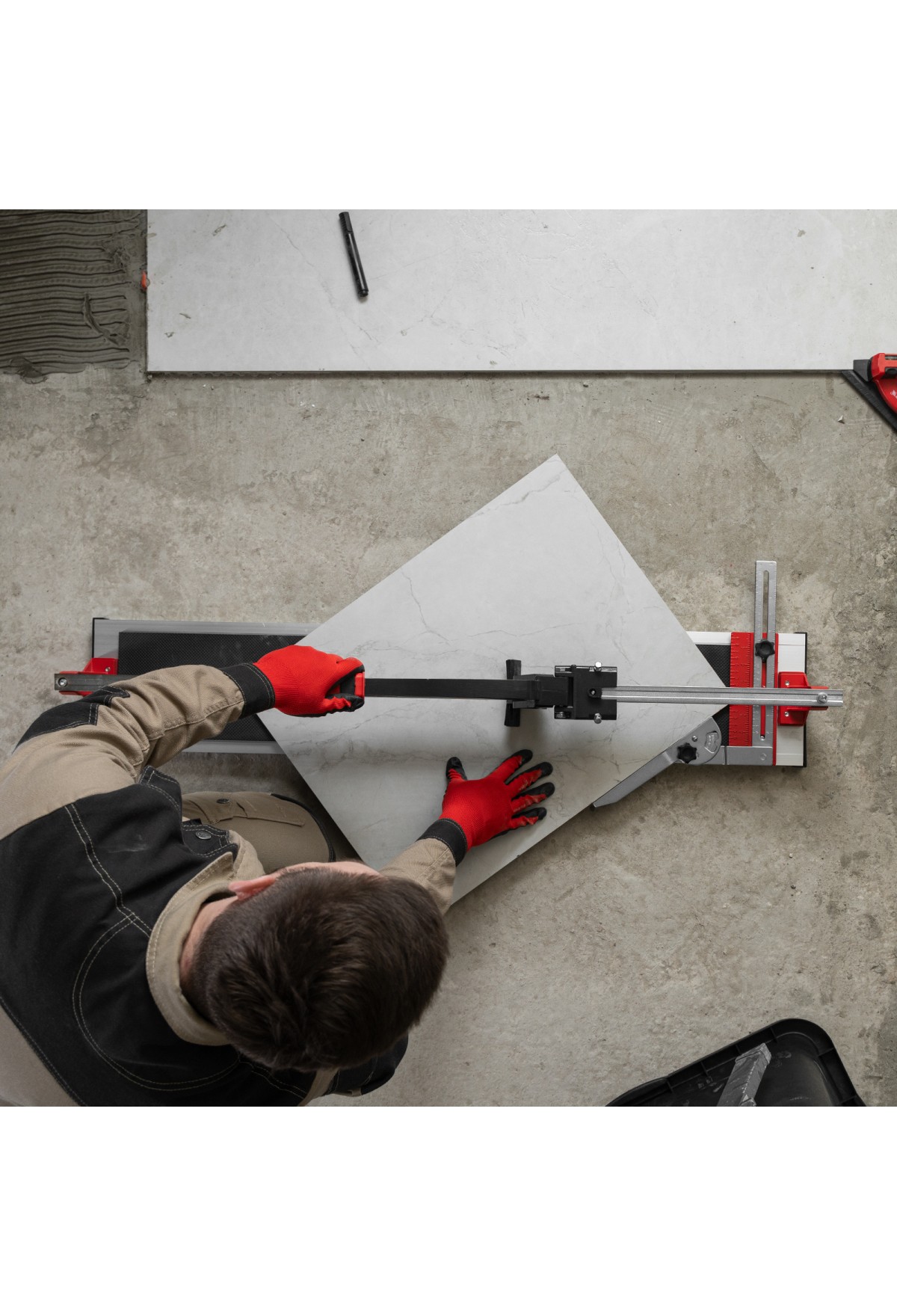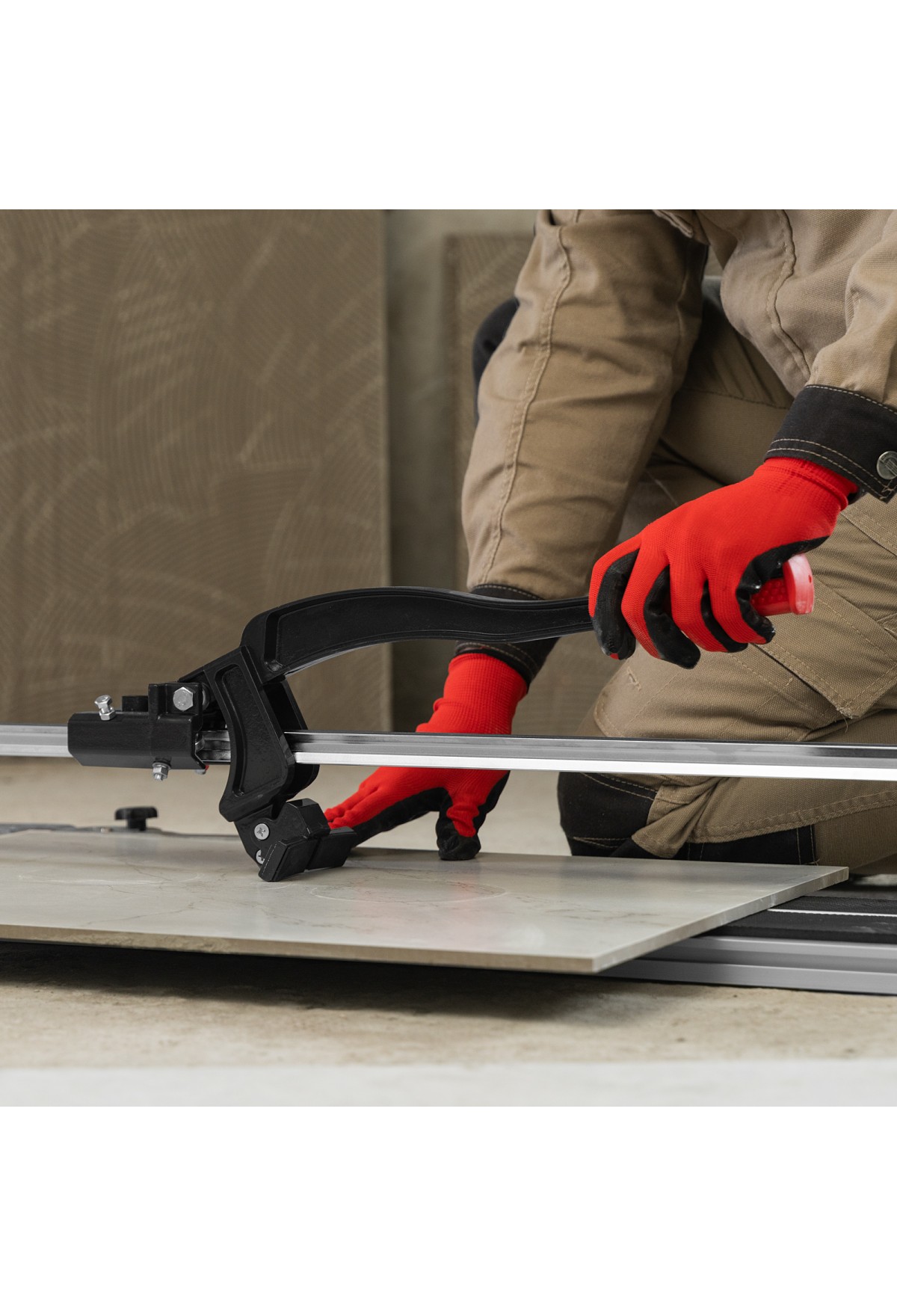 Рельсовый плиткорез MTX 87691 способен резать плитку длиной до 900 мм и толщиной до 16 мм для придания ей необходимых размеров. Мощный разделитель справляется с резкой не только керамической, но и керамогранитной плитки. Продуманная конструкция позволяет производить разлом в любой точке поверхности плитки. Инструмент используется во время проведения облицовочных работ.