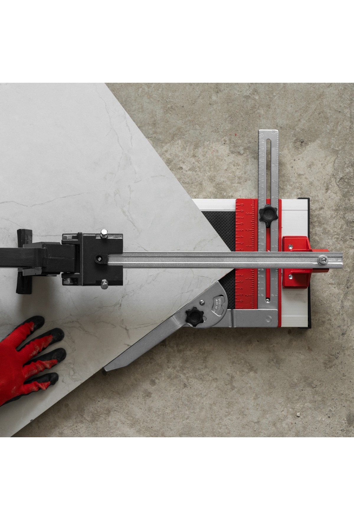 - Резка под углом до 45° — производителем предусмотрен поворотный угольник-угломер, обеспечивающий также дополнительную фиксацию плитки.