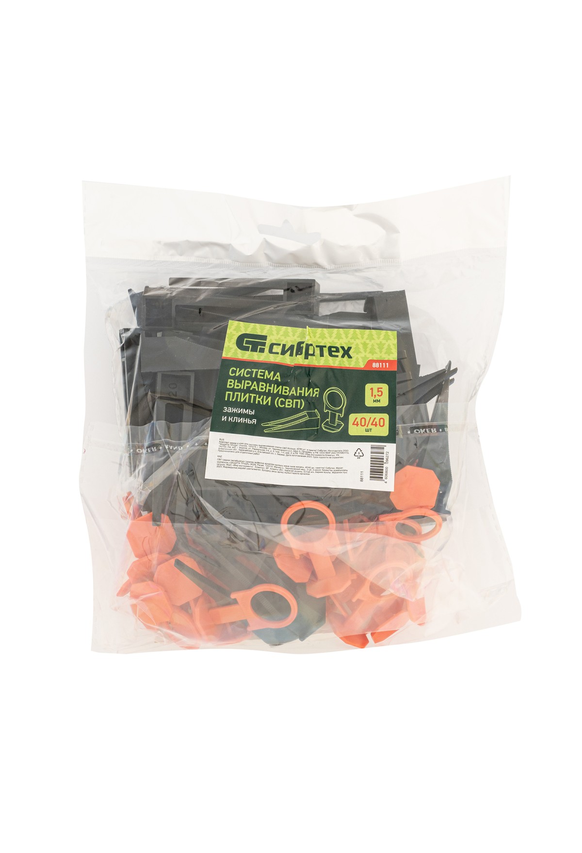 Комплект зажим и клин для системы выравнивания плитки СВП Кольцо, 40/40 шт. в пакете Сибртех