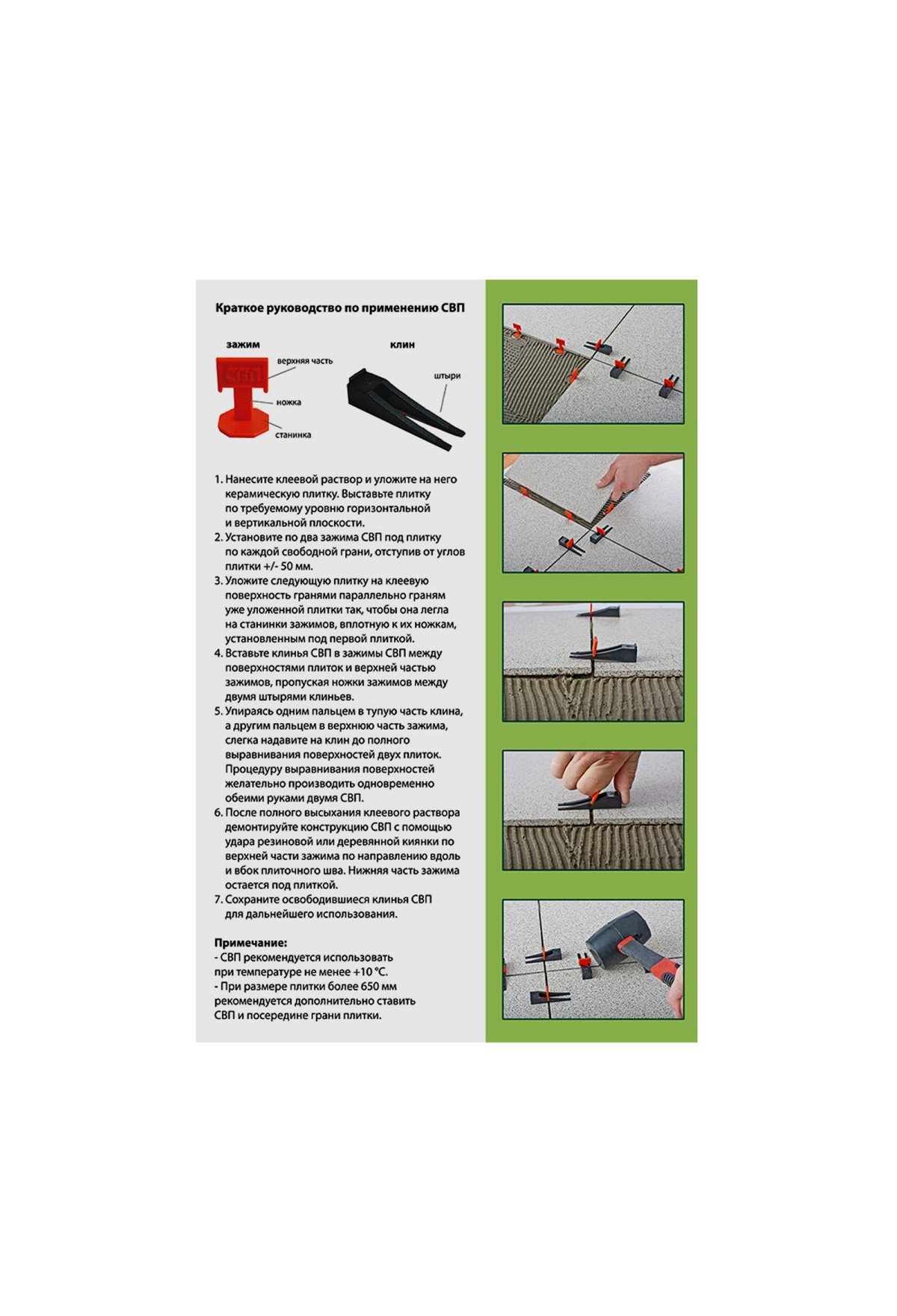 - Долговечность — клинья из высококачественного пластика рассчитаны на многоразовое использование.