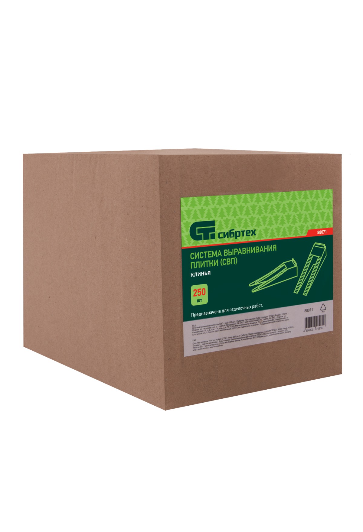 Система выравнивания плитки (СВП) Сибртех 88071 включает в себя клинья (250 шт. в упаковке), облегчающие, совместно с зажимами Сибртех 88055 и 88073, укладку керамической и керамогранитной плитки толщиной 6-12 мм на стены или на пол. Изделия пригодятся не только начинающему мастеру, но и профессионалу. Благодаря инструментам для укладки плитка не смещается и не проседает во время высыхания, швы получаются ровными и аккуратными, что гарантирует качественный результат.