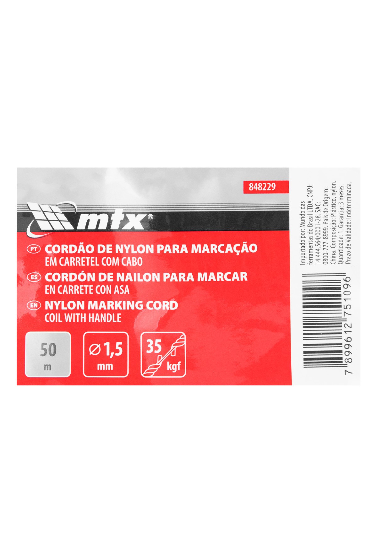 Технические характеристики Шнур Нейлоновый разметочный на катушке c ручкой D 1.5 мм, 50 м Matrix