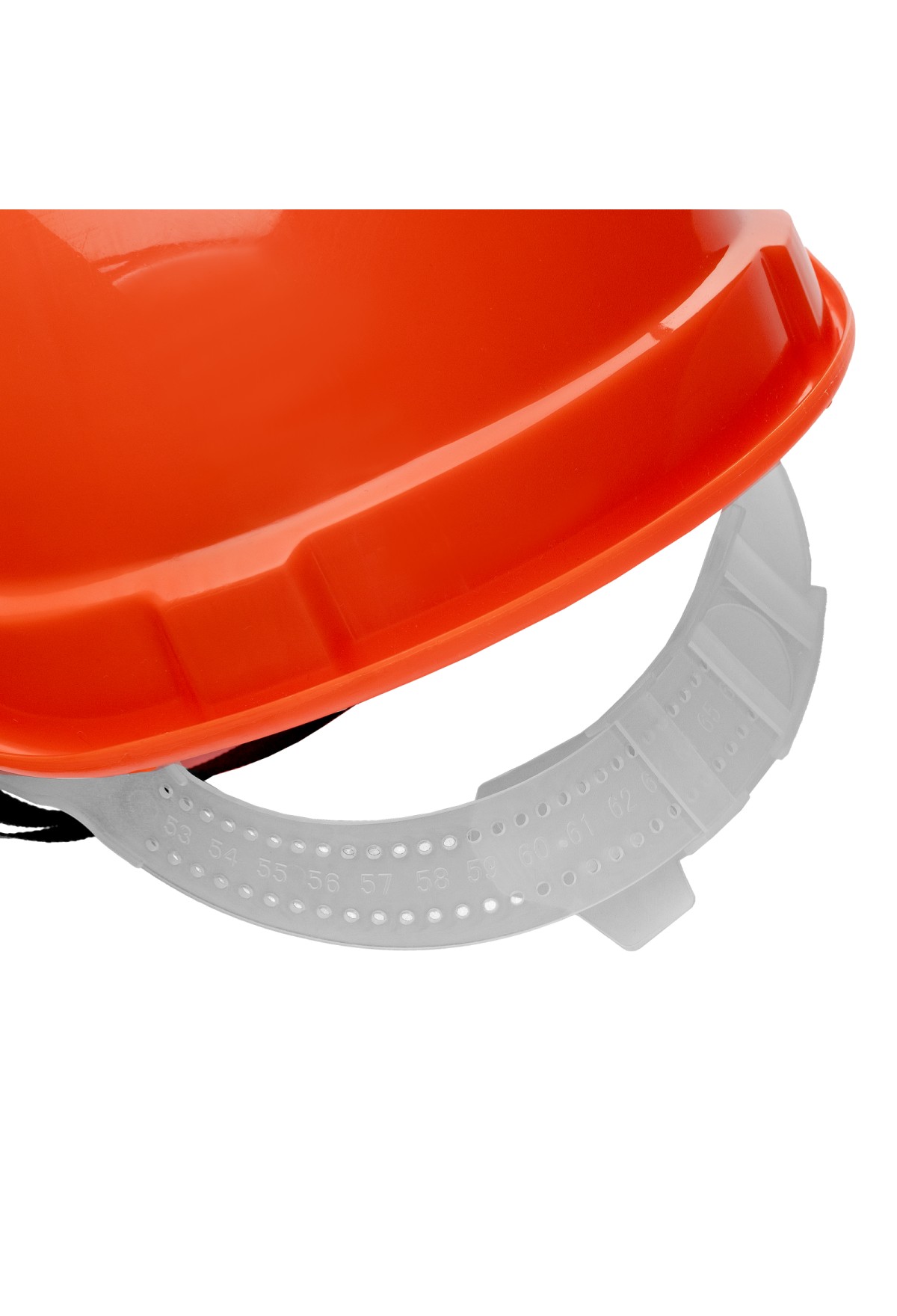 - Регулируемое оголовье — каску можно отрегулировать под размер головы (с 52 по 62), чтобы она не спадала.