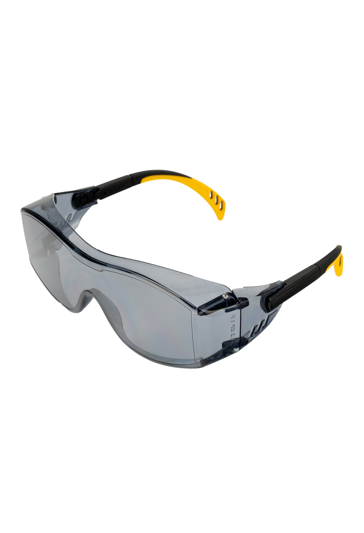 - Продуманная конструкция — особая форма линз обеспечивает боковую и надбровную защиту, а также позволяет носить защитные очки вместе с коррригирующими.