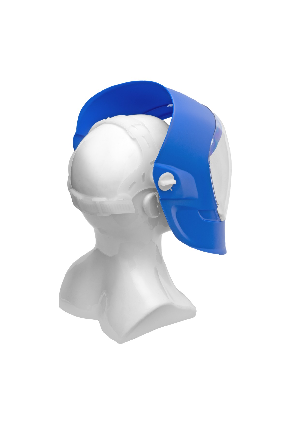 - Теменная и налобная ленты плавно регулируются, обеспечивая комфортную посадку щитка, что особенно удобно при ношении головного убора.