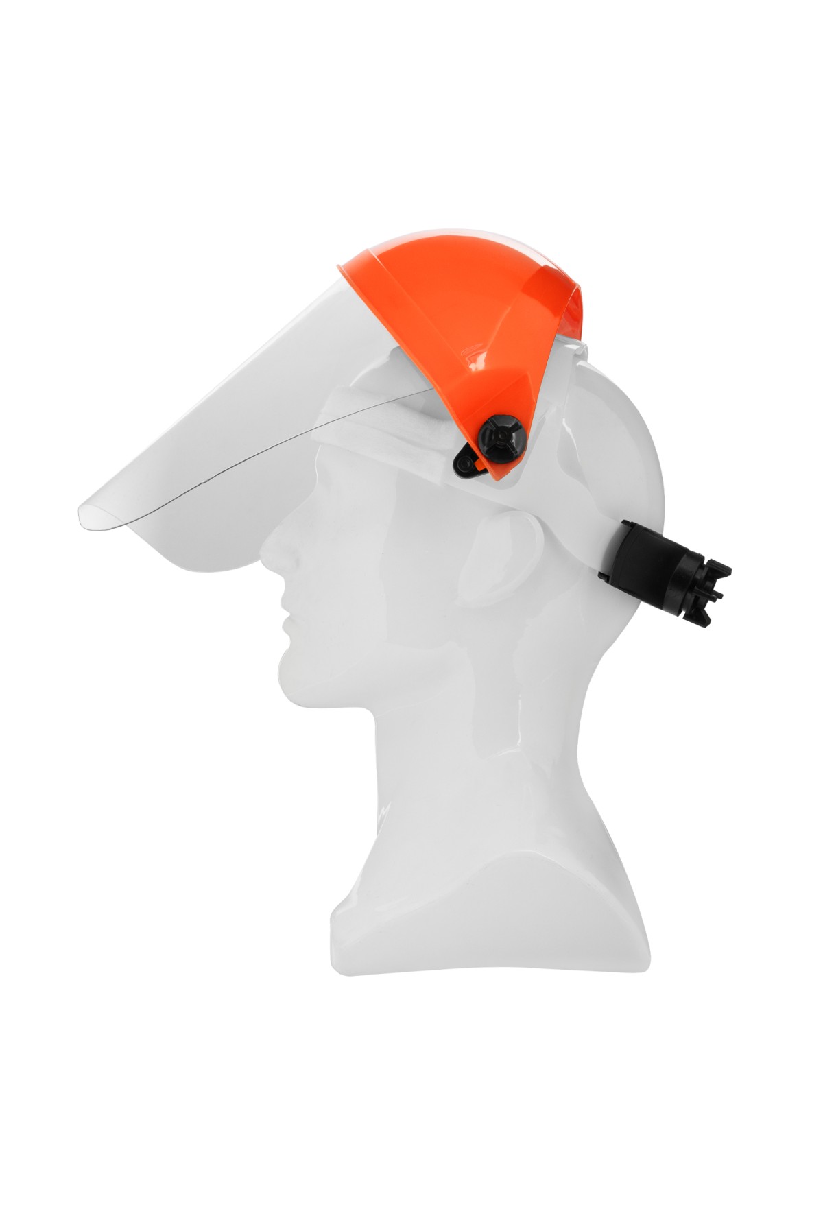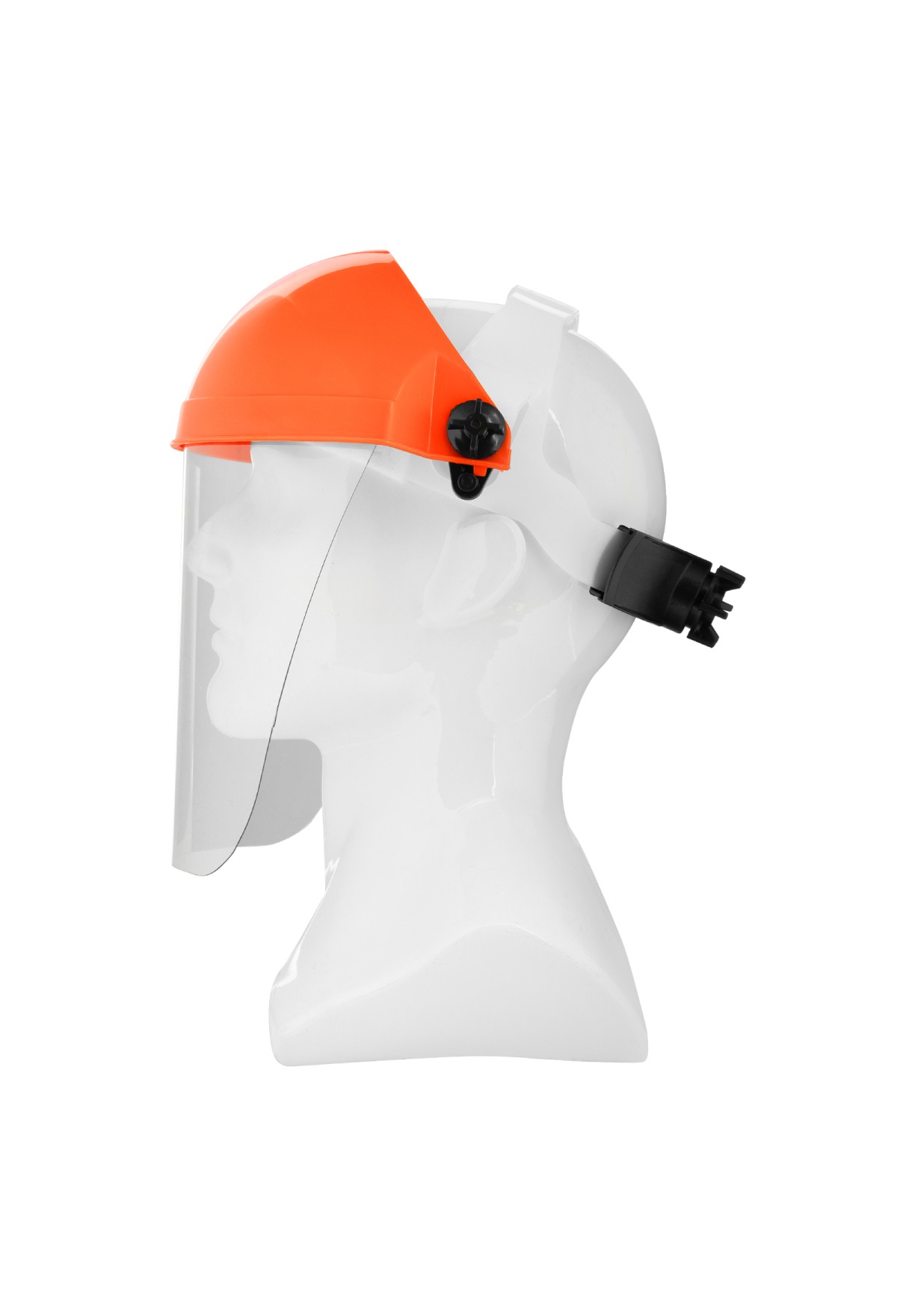 - Козырек из противоударного термостойкого пластика защищает голову сверху.