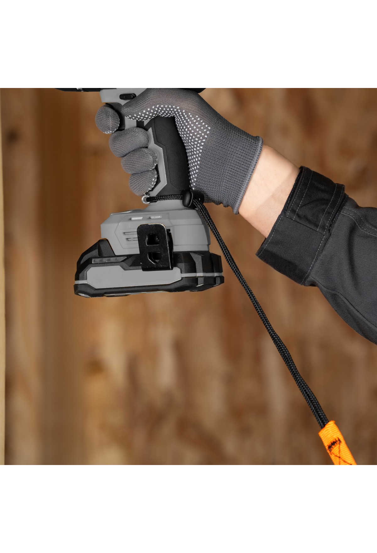 • Универсальность — шнур с зажимом позволяет прикрепить к подвесу инструмент, даже если у него нет специальной скобы.