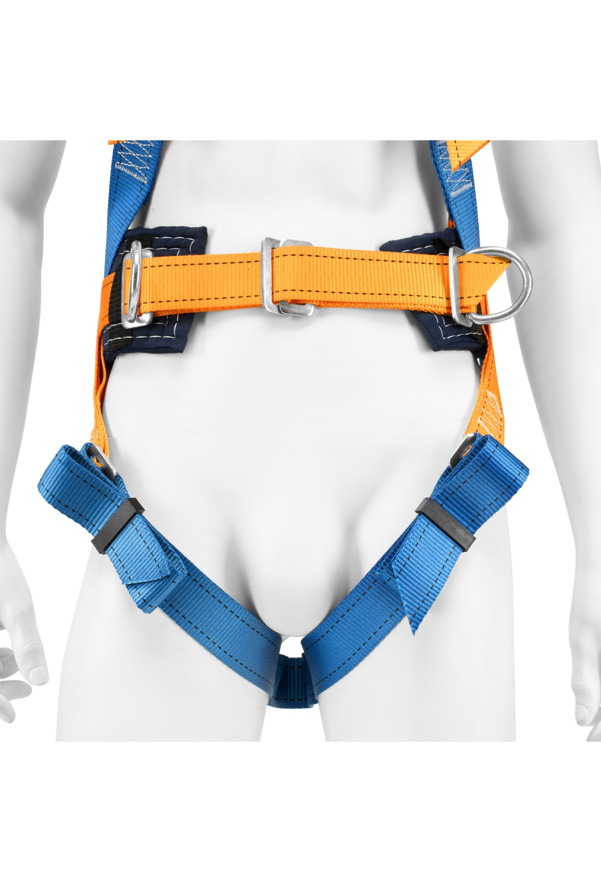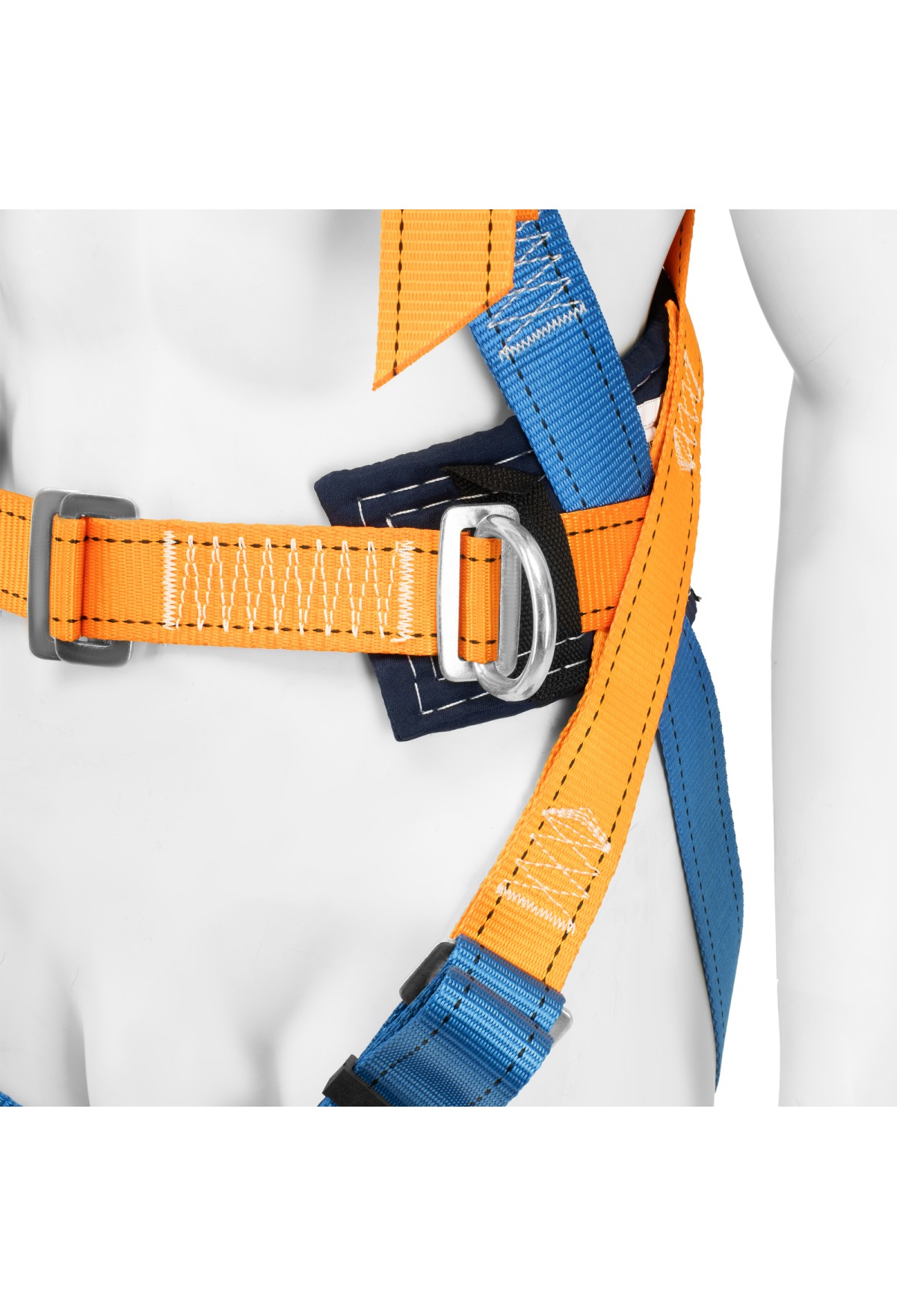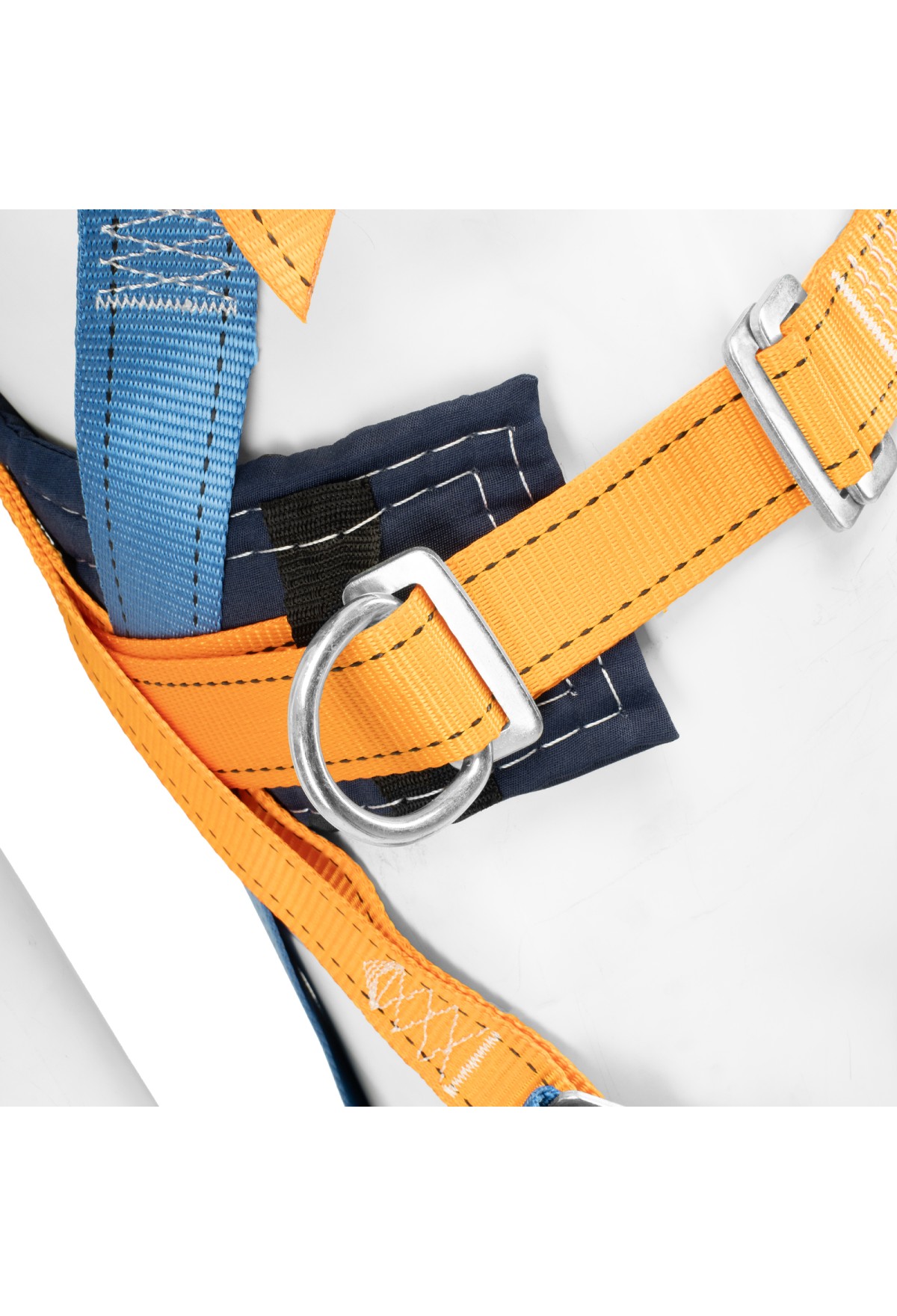 - Надежное позиционирование — привязь снабжена большим монтажным карабином и 3 металлическими D-образными кольцами.