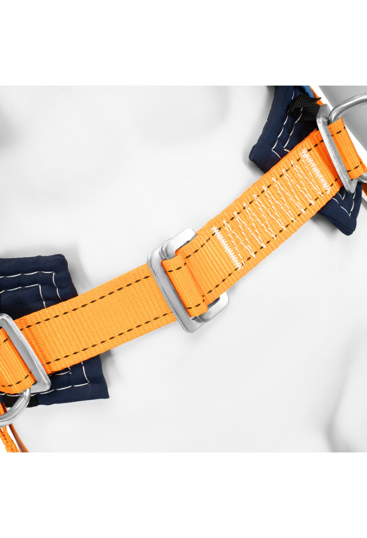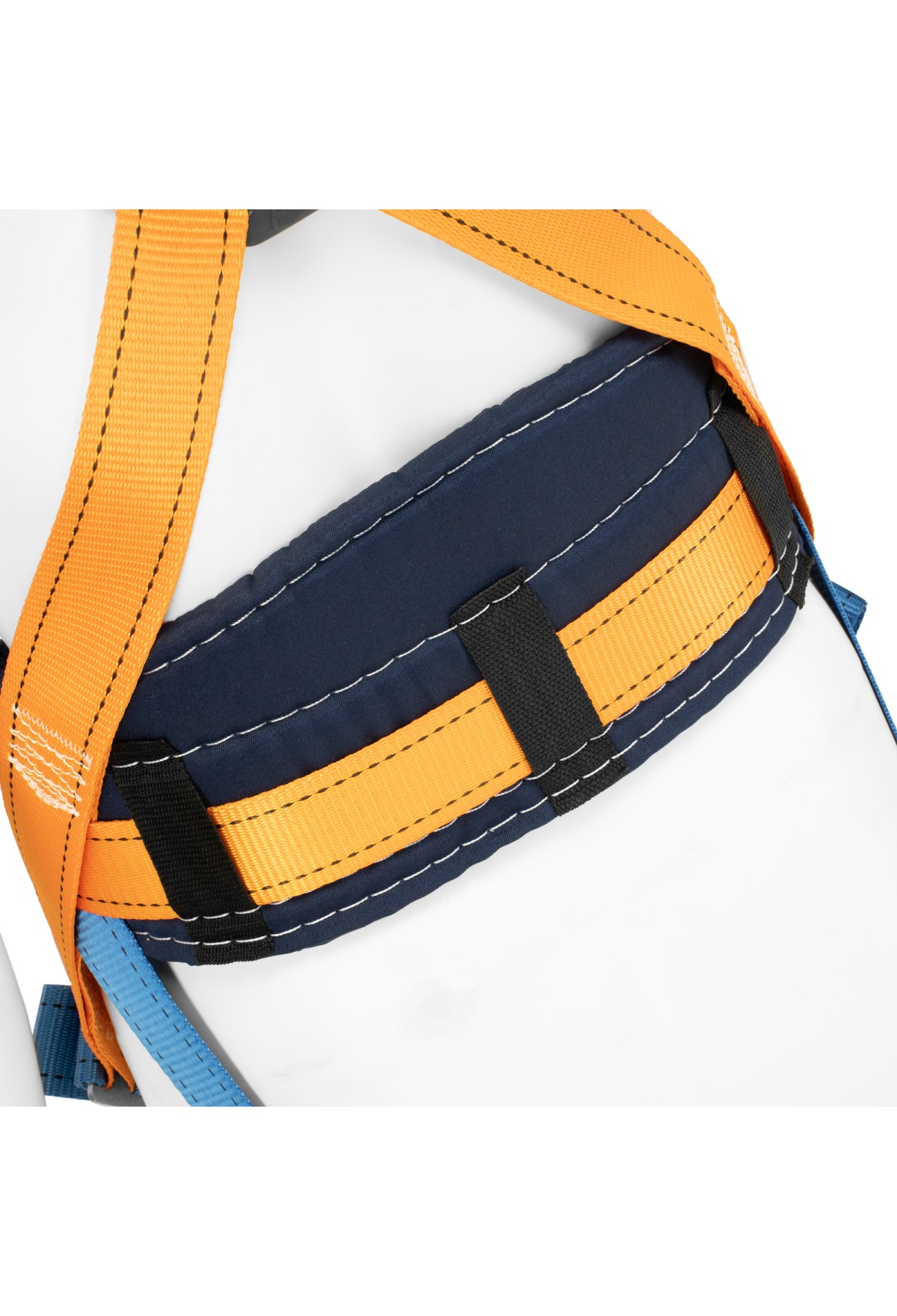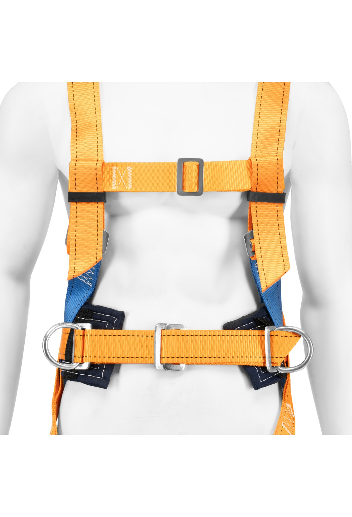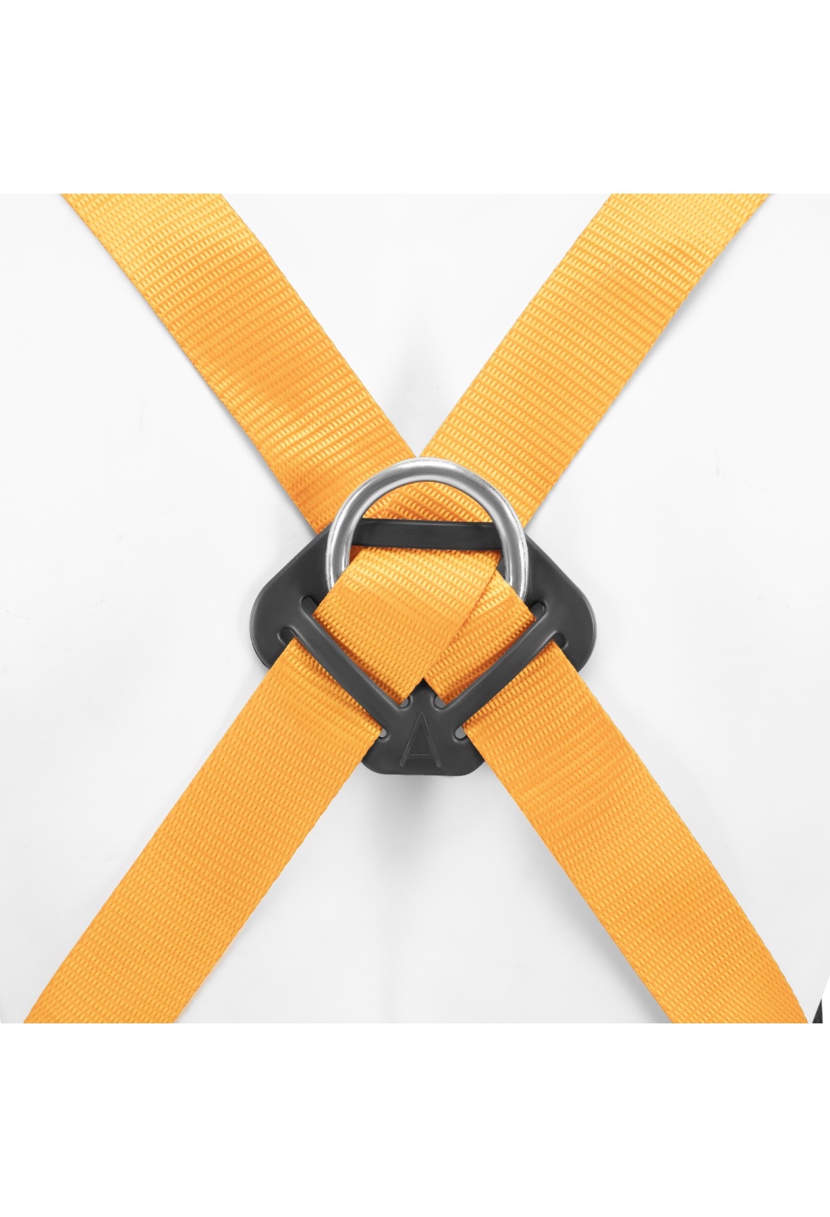 - Надежное позиционирование — привязь снабжена большим монтажным карабином и 3 металлическими D-образными кольцами.