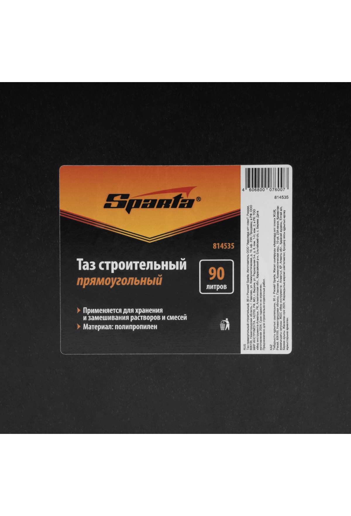 Тэги: Таз прямоугольный строительный, 90 л Sparta, VR6-814535, SPARTA, VR6, VR6-Отделочный инструмент, VR6-Тазы строительные