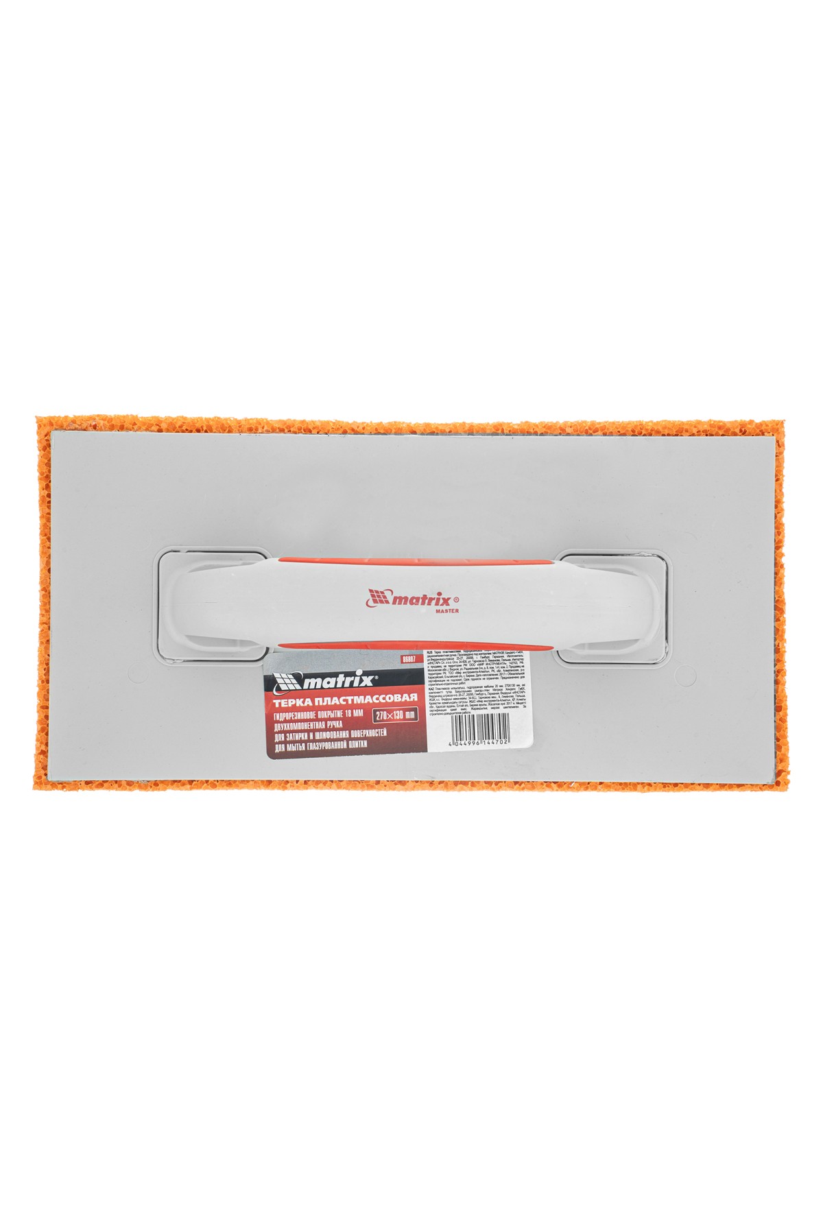 Технические характеристики Терка пластмассовая, гидрорезиновое покрытие 18 мм, 270 x 130 мм, двухкомпонентная ручка Matrix