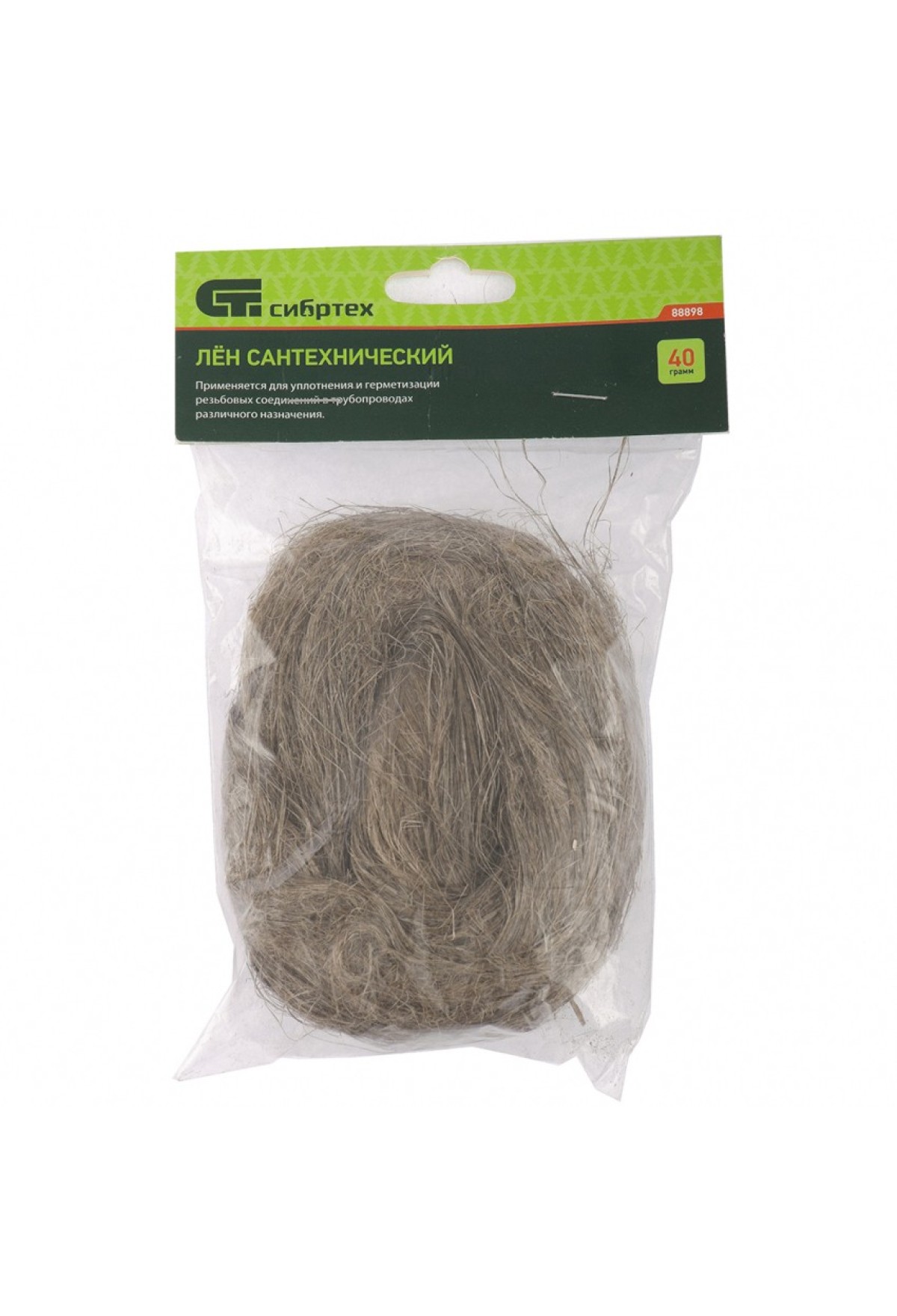 Лен сантехнический Сибртех 88898, 40 г, используется в качестве уплотнителя резьбовых соединений. За счет термостойкости легко выдерживает температуру до 160 °С, поэтому пригодится при монтаже паровых систем и тепло-водоснабжения. Лен не разрушается в процессе эксплуатации, благодаря чему обеспечивает надежную герметизацию.