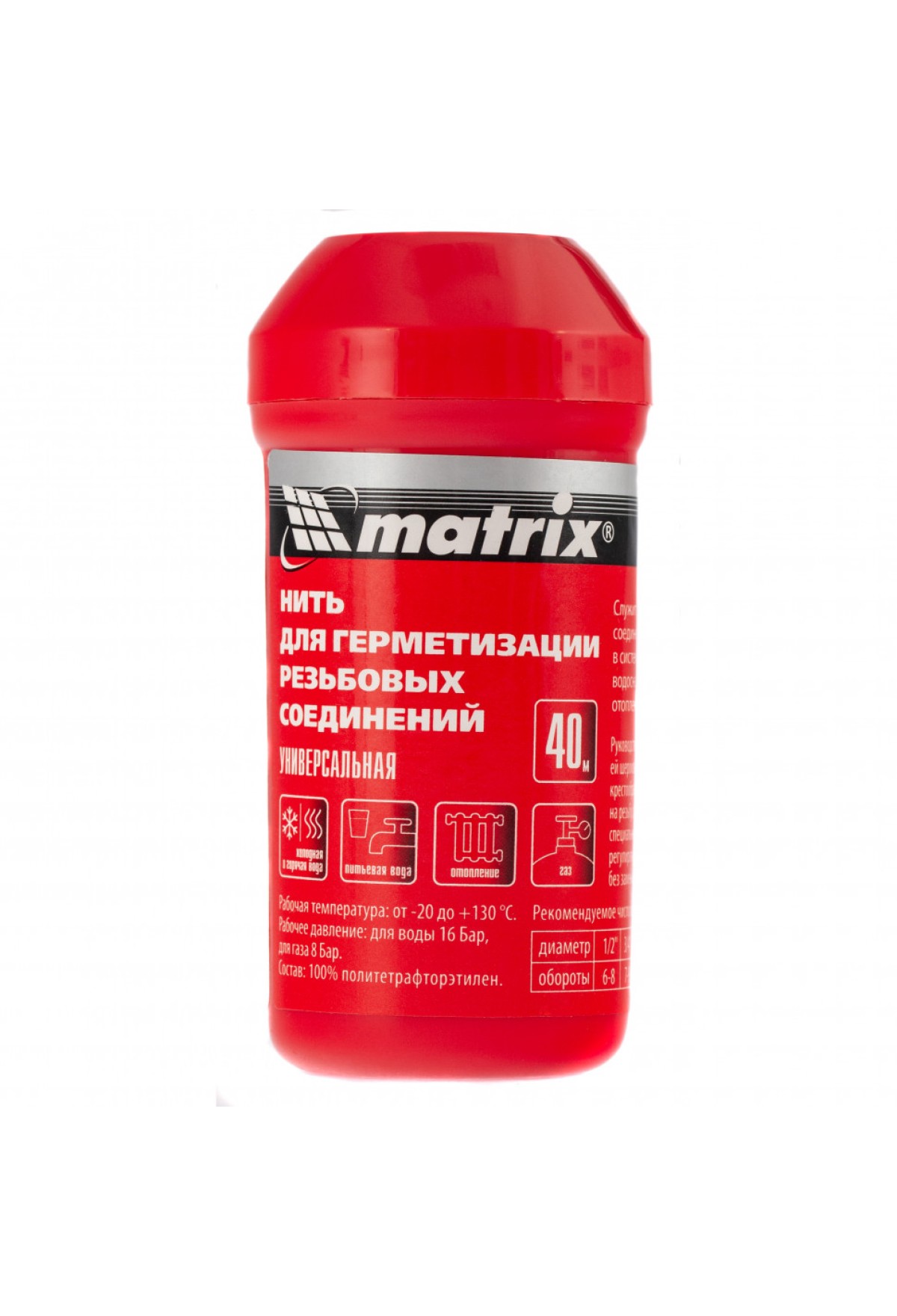 Технические характеристики Нить для герметизации резьбовых соединений, универсальная, 80 м Matrix