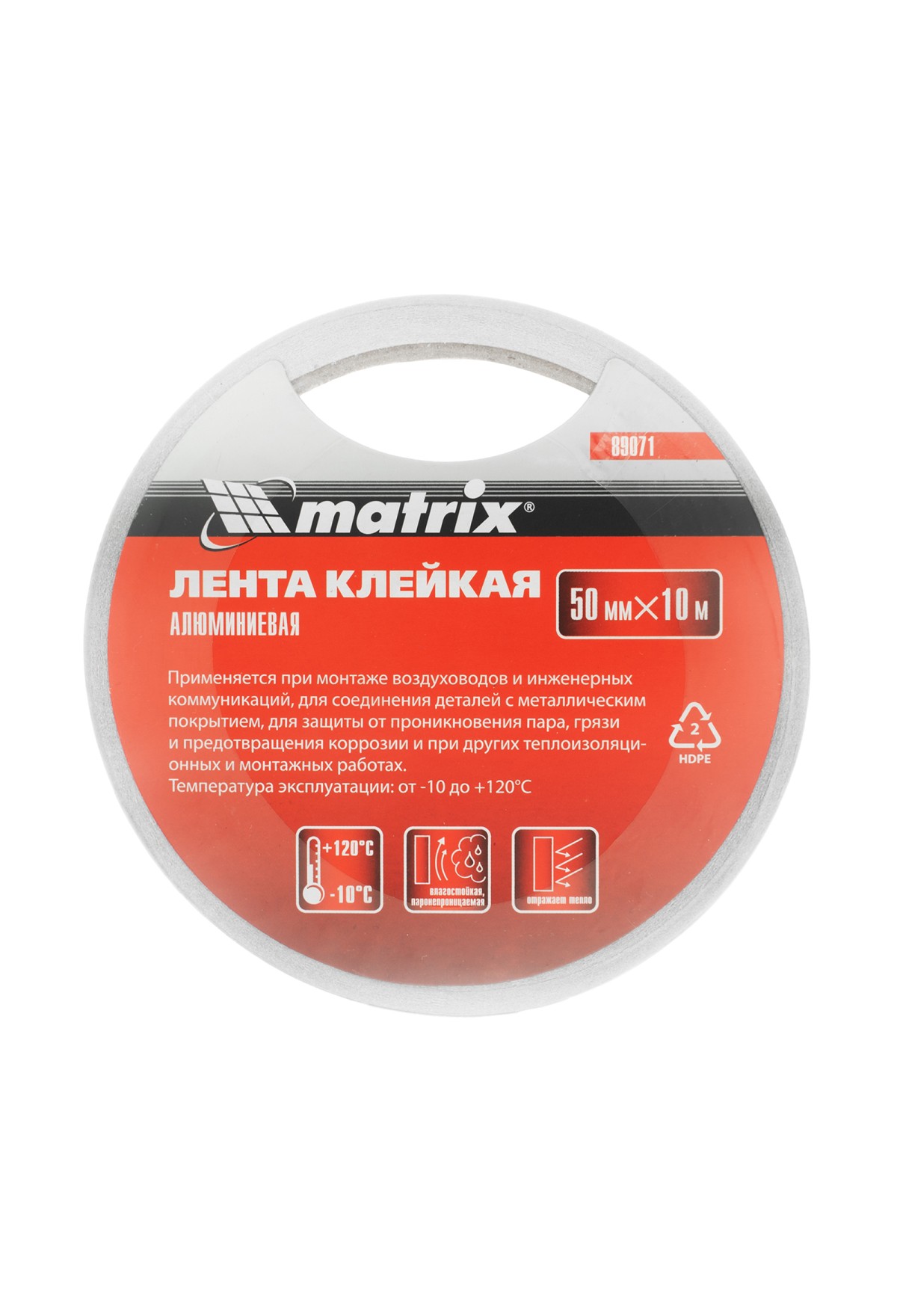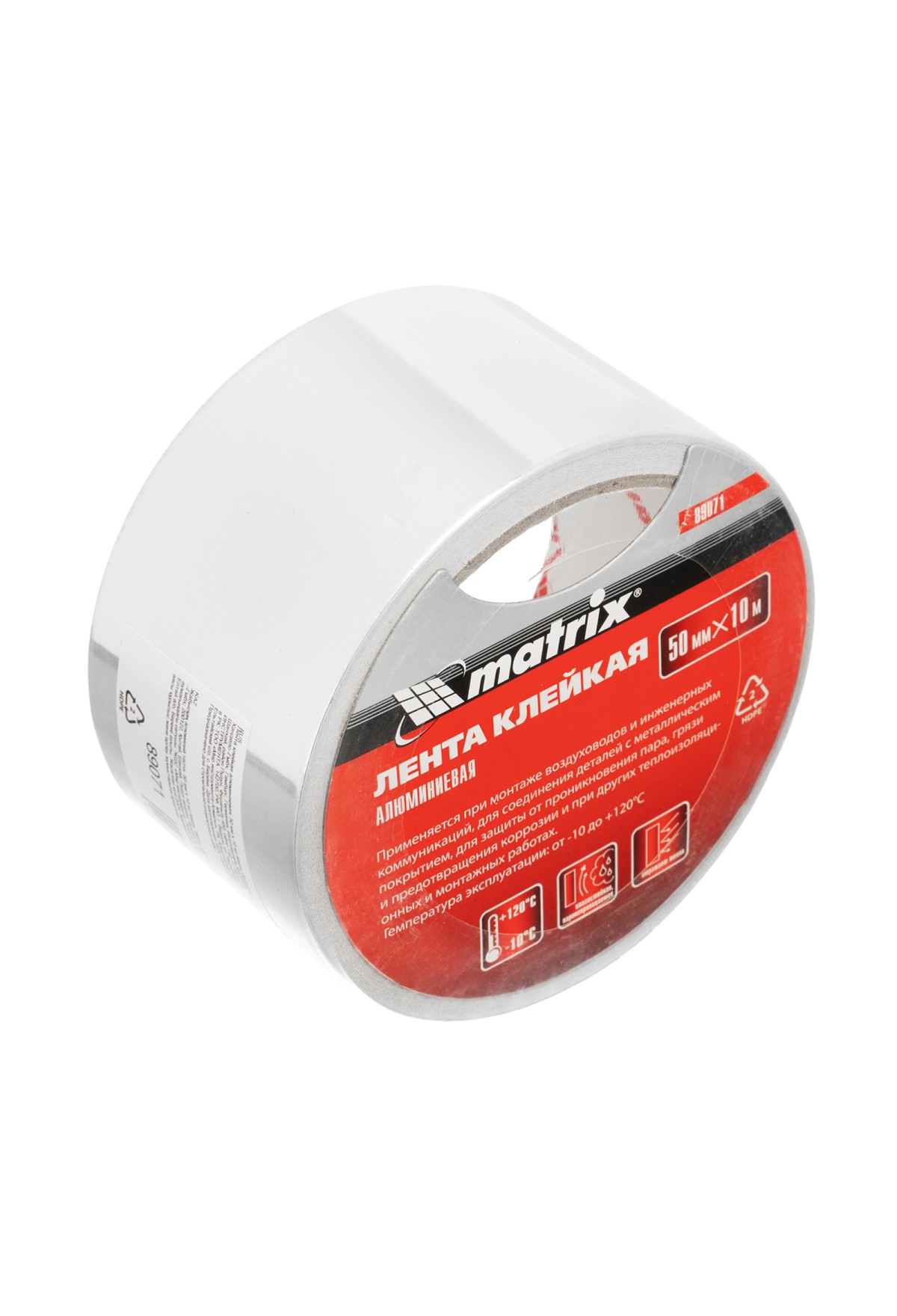 Технические характеристики Лента клейкая алюминиевая, 50 мм х 10 м Matrix