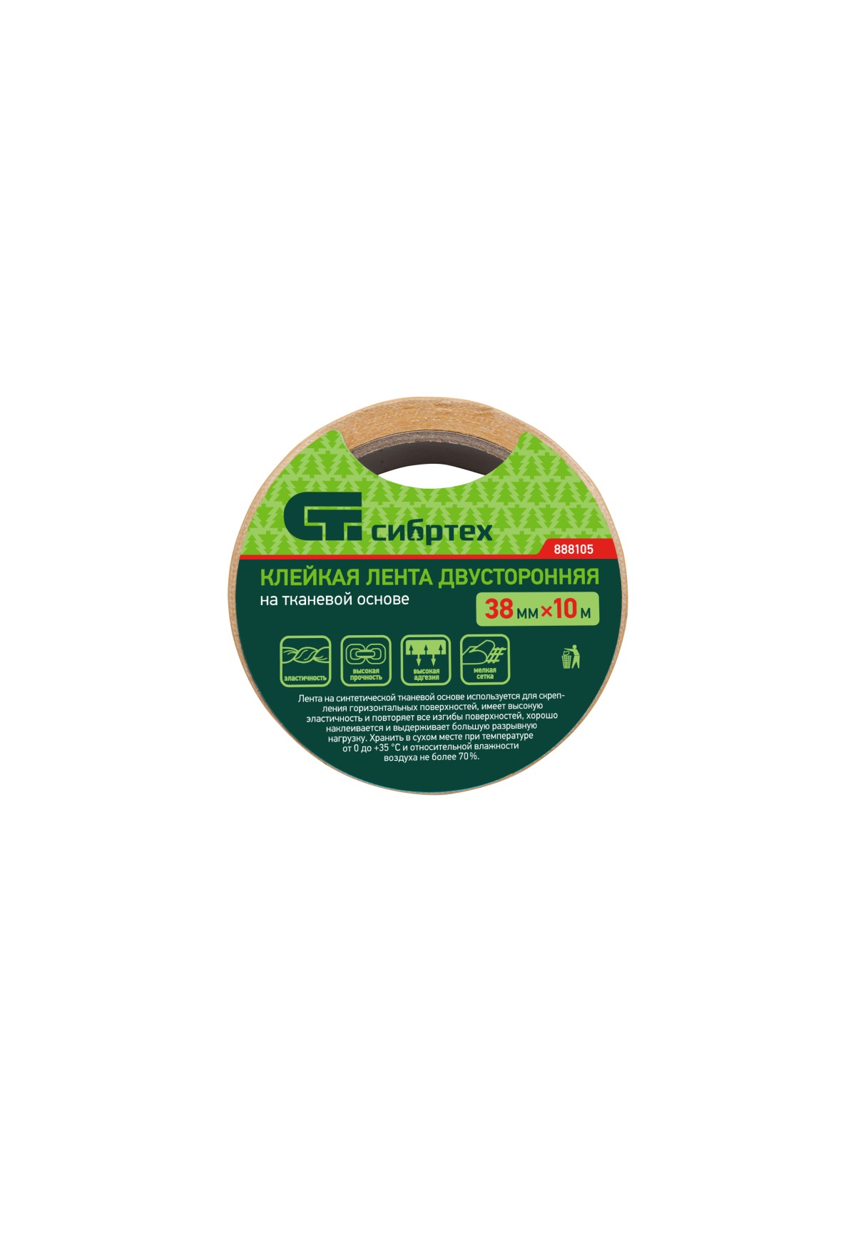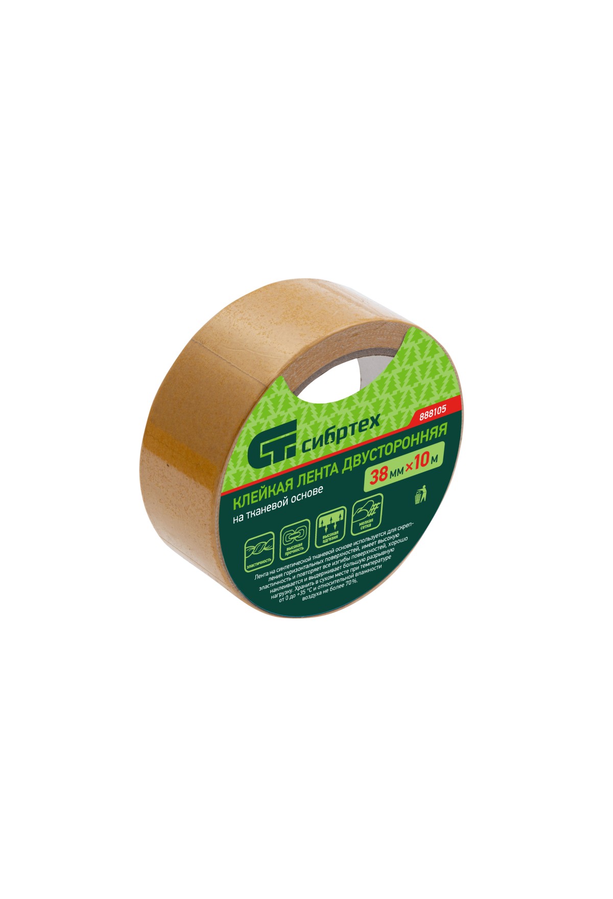 Технические характеристики Лента клейкая двусторонняя, 38 мм х 10 м, на тканевой основе Сибртех