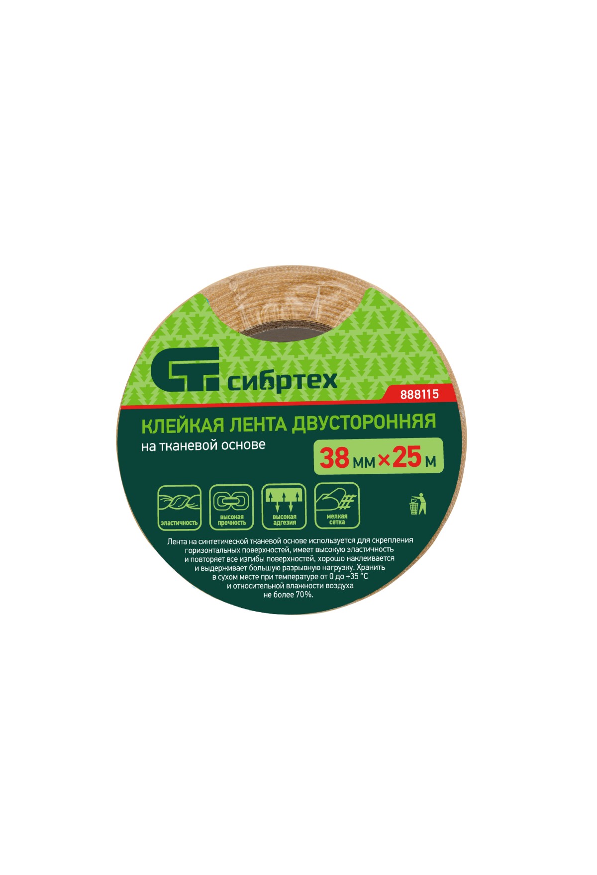 Лента клейкая двусторонняя, 38 мм х 25 м, на тканевой основе Сибртех