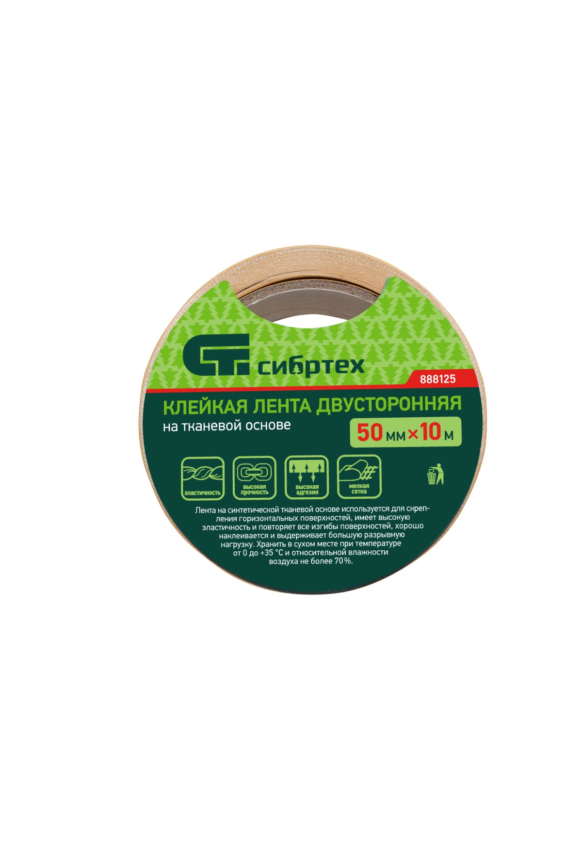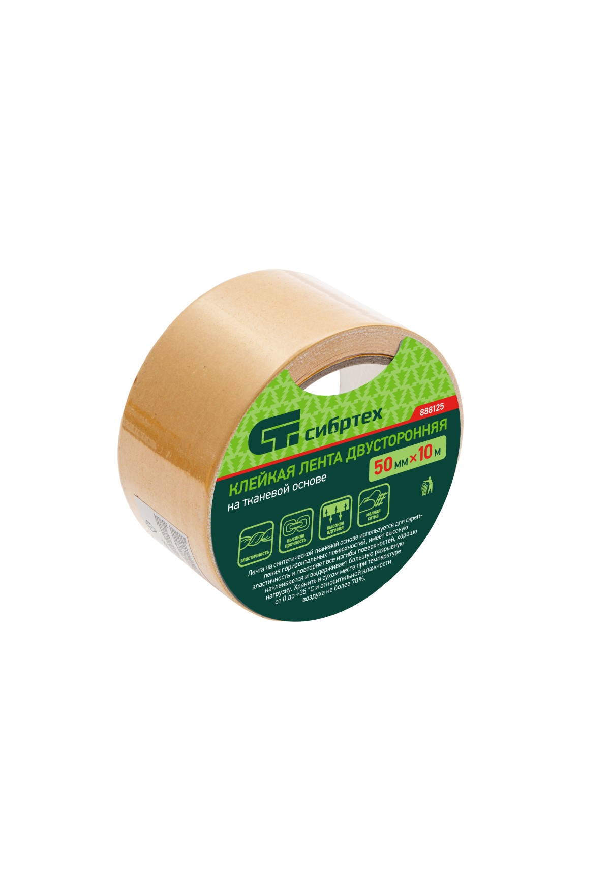 Технические характеристики Лента клейкая двусторонняя, 50 мм х 10 м, на тканевой основе Сибртех