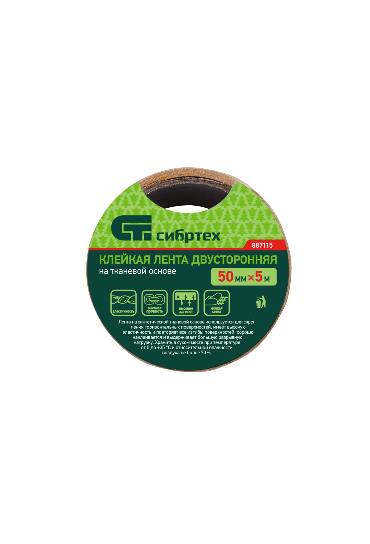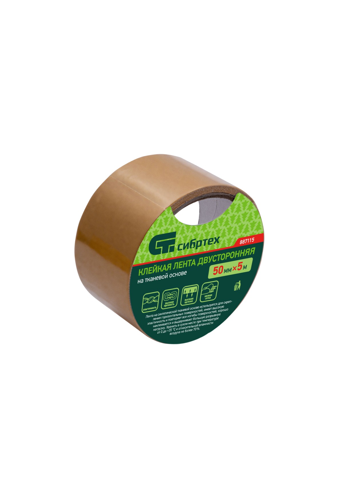 Технические характеристики Лента клейкая двусторонняя, 50 мм х 5 м, на тканевой основе Сибртех