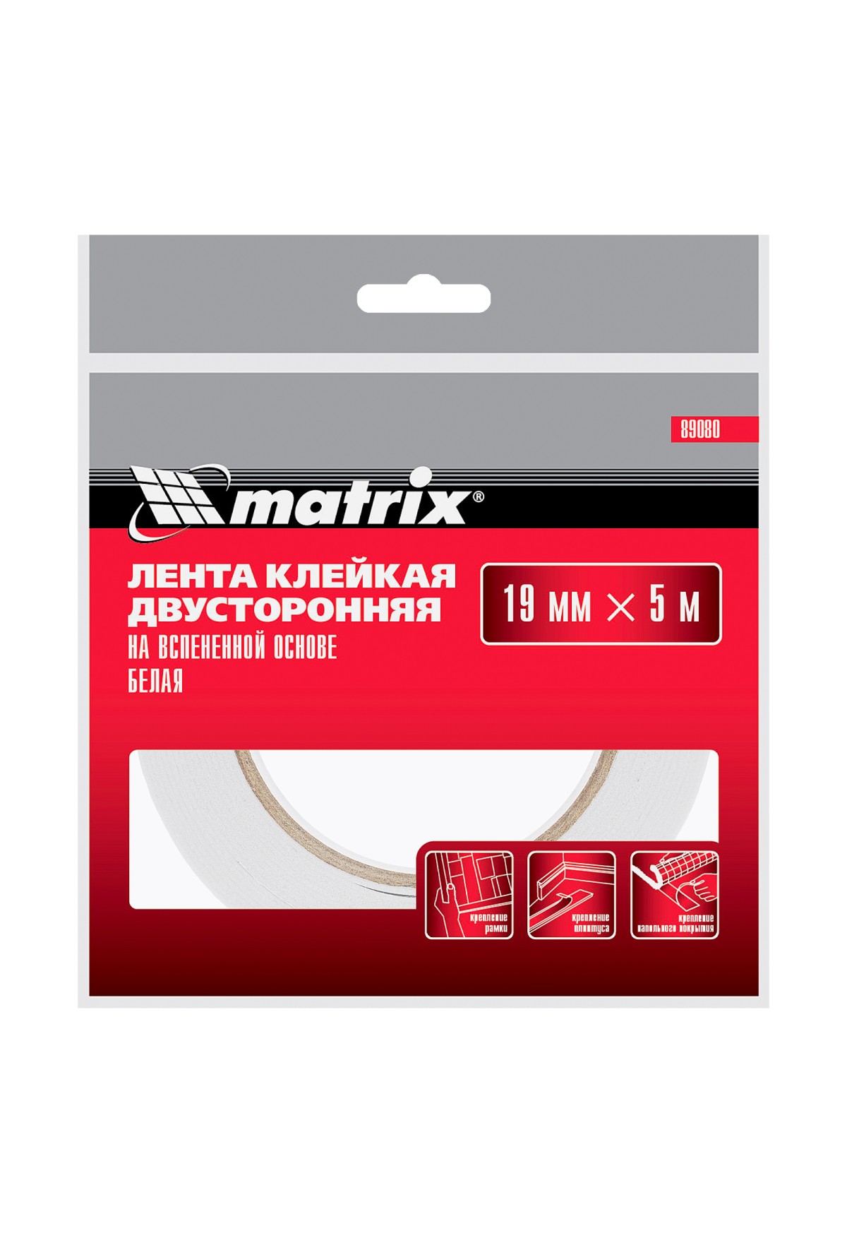 Двусторонняя клейкая лента на вспененной основе Matrix 89080 белого цвета, размером 19 мм х 5 м, предназначена для склеивания металлических, пластиковых, стеклянных, керамических, картонных и других деталей. Подходит для бытового применения, может использоваться в частных мастерских. Пригодится во время ремонта, отделки помещений, будет полезна во время занятий декорированием и рукоделием. Оптимальна для монтажа зеркал, автомобильных молдингов, крючков, подвергающихся сдвигам и вибрационным нагрузкам.