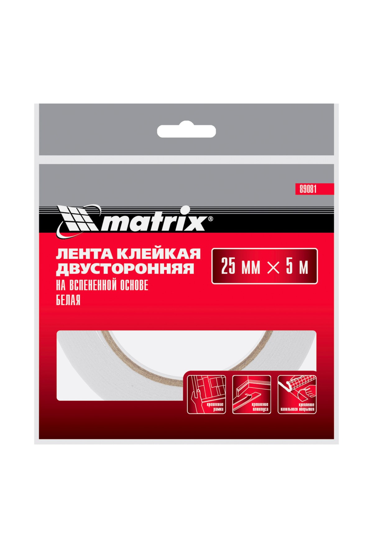• Лента клейкая на вспененной основе, двусторонняя белая 25 мм х 5 м Matrix
