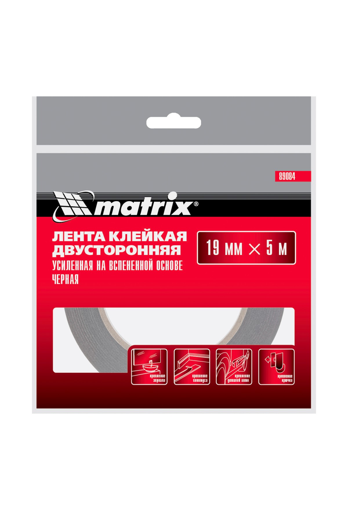• Лента клейкая на вспененной основе усиленная, двусторонняя, черная, 19 мм х 5 м Matrix